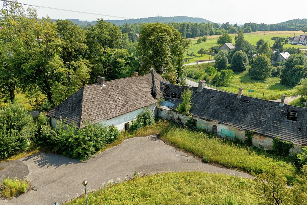 Bien immobilier des Szembek en Petite-Pologne. La majorité des bâtiments du complexe château-parc à Poręba Żegoty se trouvent aujourd'hui dans un état de délabrement avancé. Cependant, l'offre d'achat inclut un projet achevé pour la reconstruction de l'ancienne propriété, jadis appartenant à la famille Szembek. Cette famille noble d'importance a vu émerger de nombreuses personnalités influentes en Pologne.
