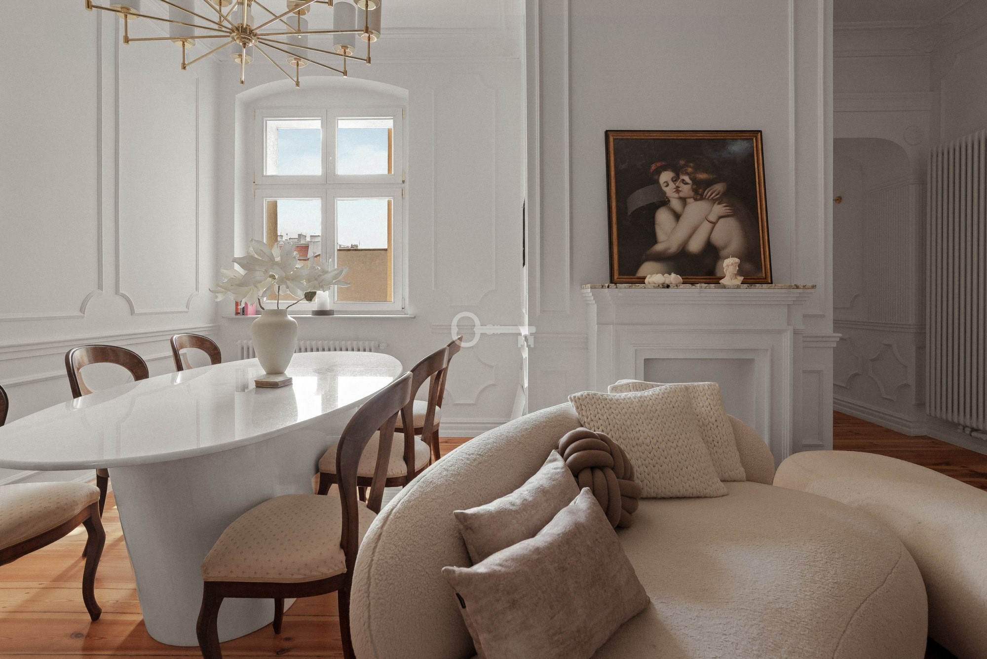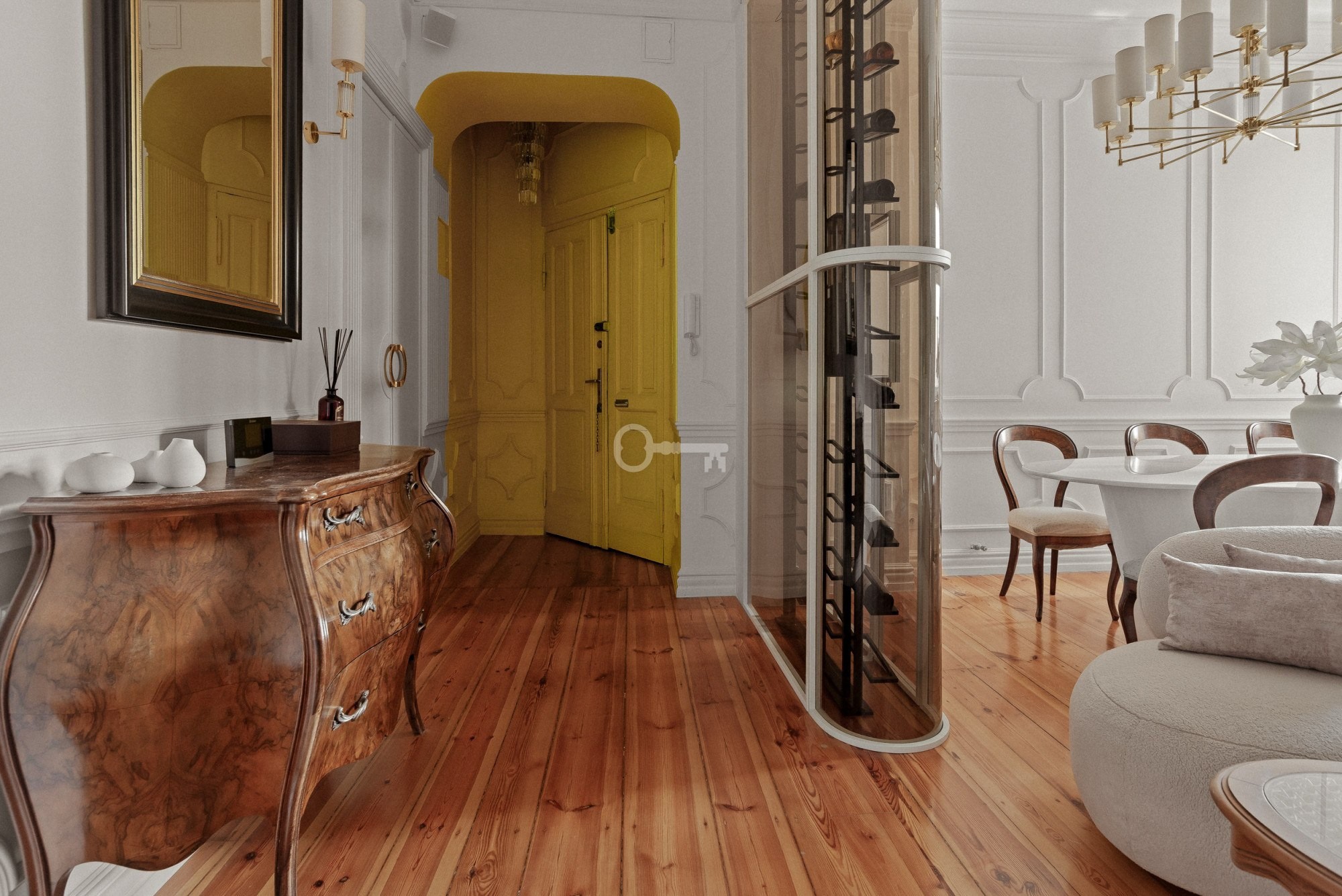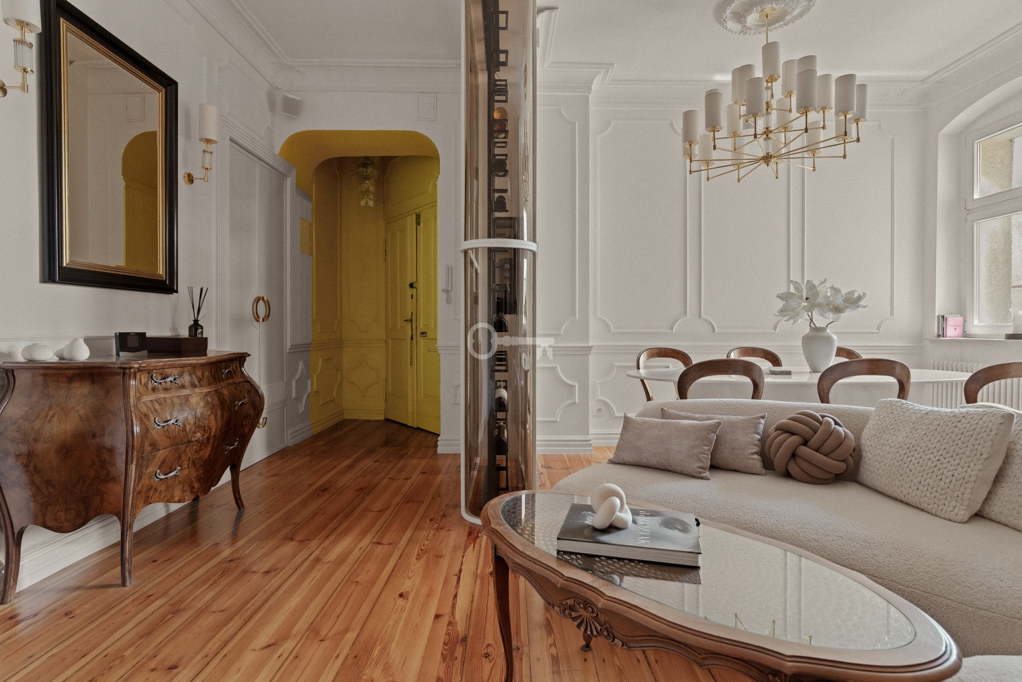 L’appartement a été entièrement rénové et est vendu meublé. Équipements : sols et éléments fixes en chêne massif, marbre naturel et pierre de quartz, mobilier sur mesure, éclairage de Vistosi, Masiero et Kutek. Cuisine équipée d’appareils Smeg et Elica, système audio Sonos, bio-cheminée dans le séjour, salle de bains avec baignoire îlot et robinetterie Hansgrohe. Chauffage au gaz. Charges de copropriété d’environ 500 PLN par mois. Pleine propriété avec inscription au registre foncier. Places de stationnement disponibles à proximité.