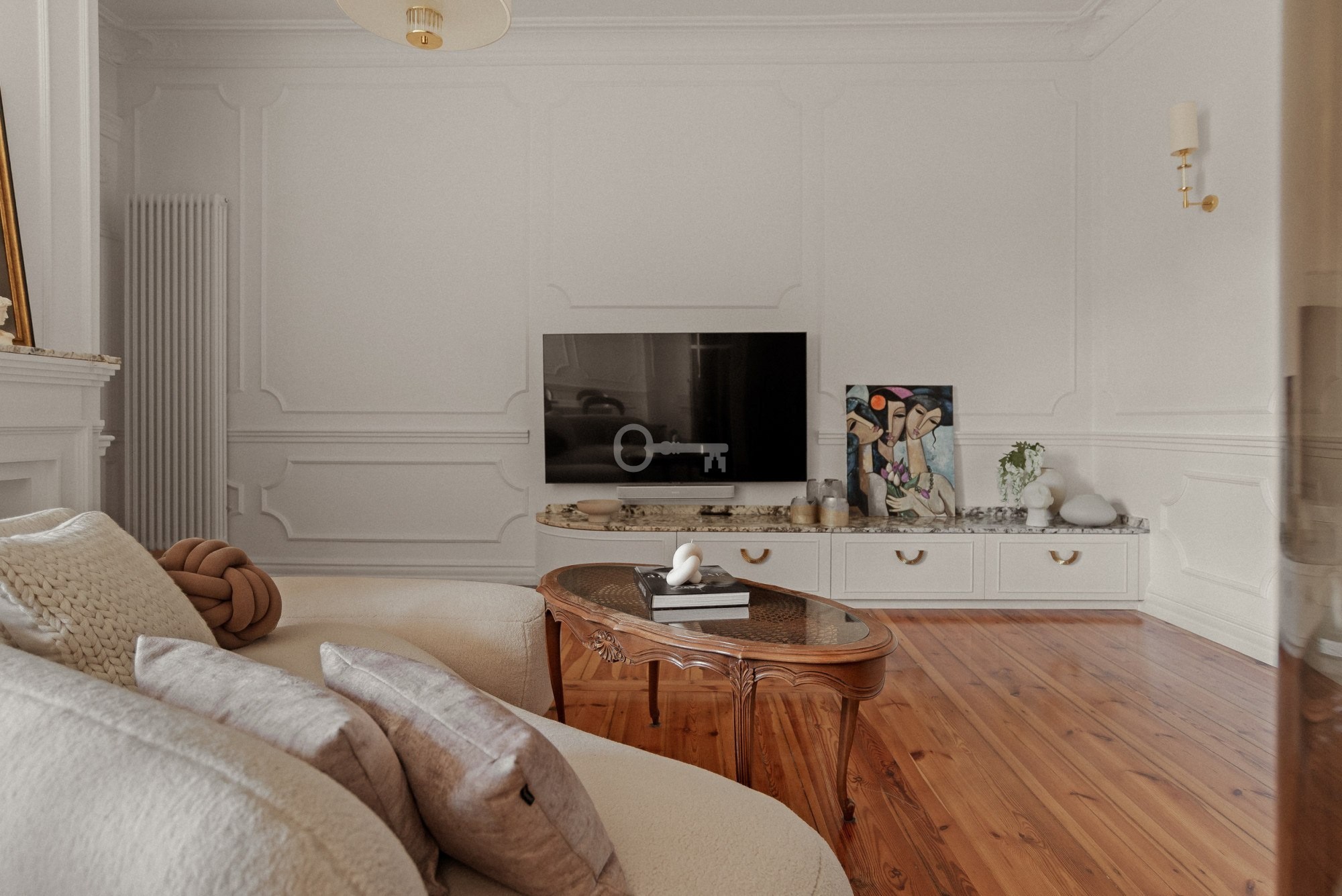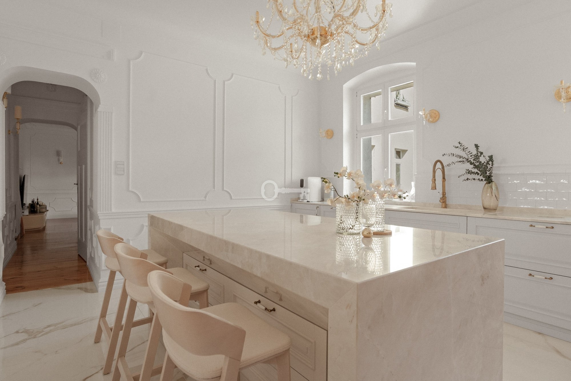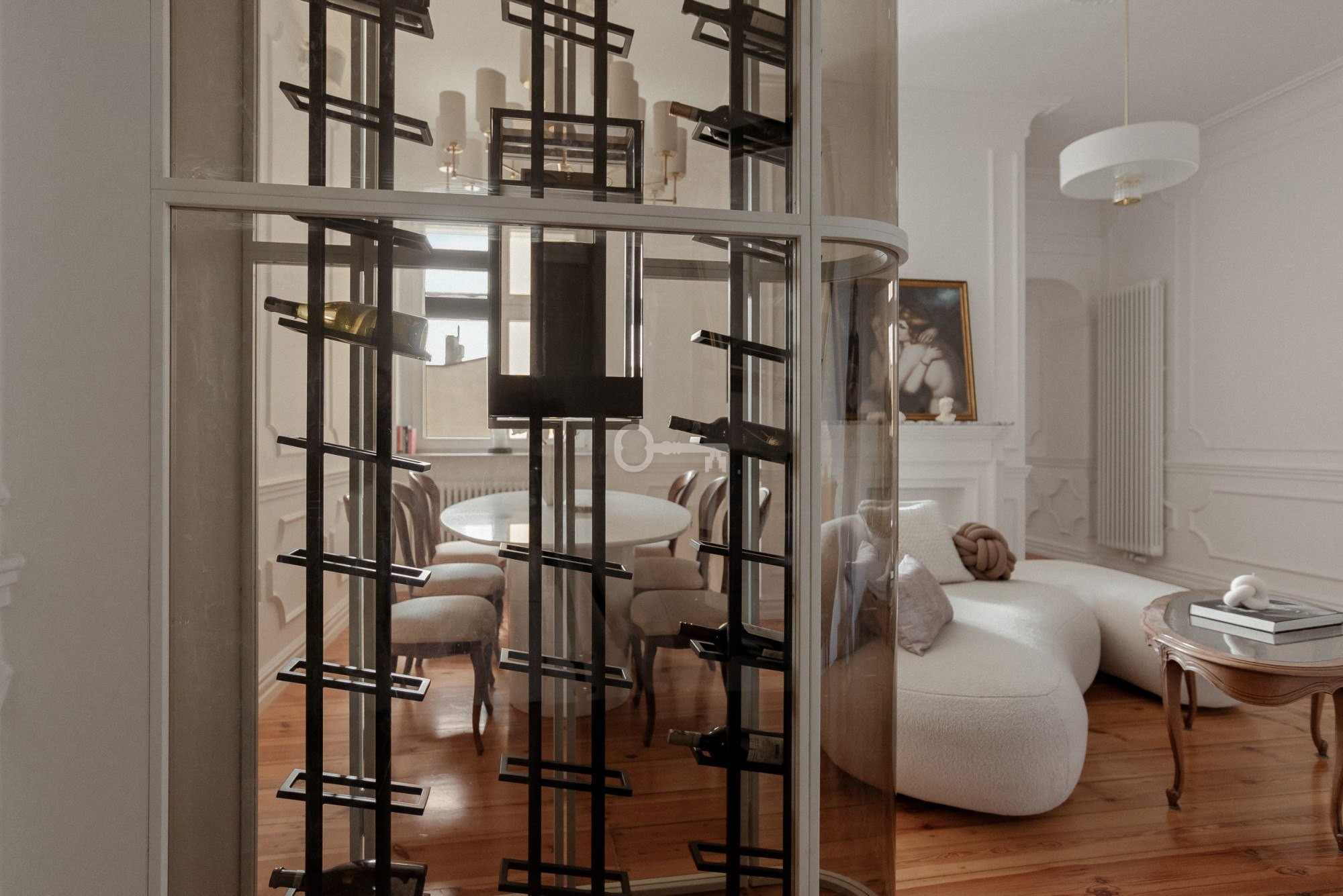 L’appartement a été entièrement rénové et est vendu meublé. Équipements : sols et éléments fixes en chêne massif, marbre naturel et pierre de quartz, mobilier sur mesure, éclairage de Vistosi, Masiero et Kutek. Cuisine équipée d’appareils Smeg et Elica, système audio Sonos, bio-cheminée dans le séjour, salle de bains avec baignoire îlot et robinetterie Hansgrohe. Chauffage au gaz. Charges de copropriété d’environ 500 PLN par mois. Pleine propriété avec inscription au registre foncier. Places de stationnement disponibles à proximité.