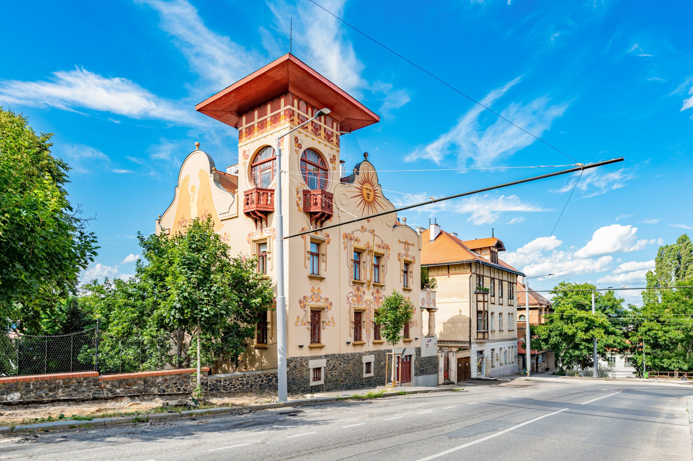 La façade a été conçue et décorée par le célèbre peintre académique František Kobliha. Sa décoration artistique comprend des ornements, des fresques, une figure d’ange et un cadran solaire – le tout dans l’esthétique la plus pure de l’Art nouveau.