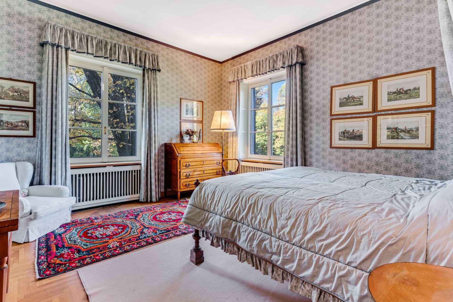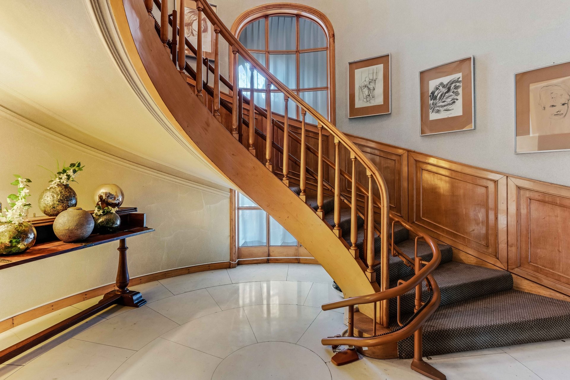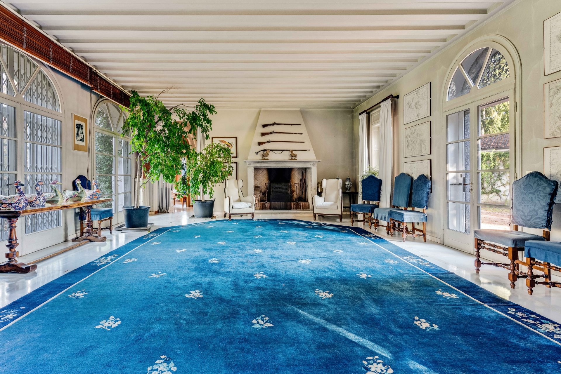 La propriété historique se compose d'une villa principale, d'anciennes écuries rénovées, d'une autre maison d'hôtes créée à partir des fermes d'origine et d'une maison de gardien à restaurer. La maison de deux étages est entourée de verdure et se trouve dans un parc centenaire avec de grands arbres qui s'étend sur plus de 2,7 hectares. Le parc dispose d'une piscine et d'un ancien court de tennis qui n'est plus utilisé aujourd'hui, mais qui peut être restauré. La villa, construite en 1950, se distingue par son architecture élégante et ses intérieurs parfaitement entretenus.