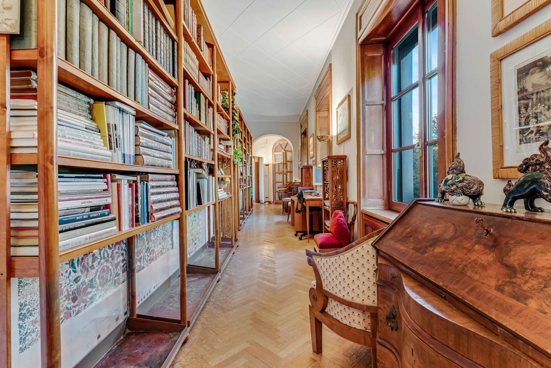 La propriété a toujours appartenu à la famille, qui doit à son arrière-grand-père d'avoir pu acquérir le terrain sur lequel se trouve aujourd'hui le parc. En 1955, la propriété a été divisée et la villa actuelle et ses dépendances ont été construites. La villa a toujours été maintenue en bon état, mais une modernisation est nécessaire. L'intérieur est élégant, avec des sols en marbre dans le hall, du bois, parfois avec des incrustations et du stuc aux plafonds. L'ensemble de la propriété offre un maximum d'intimité.