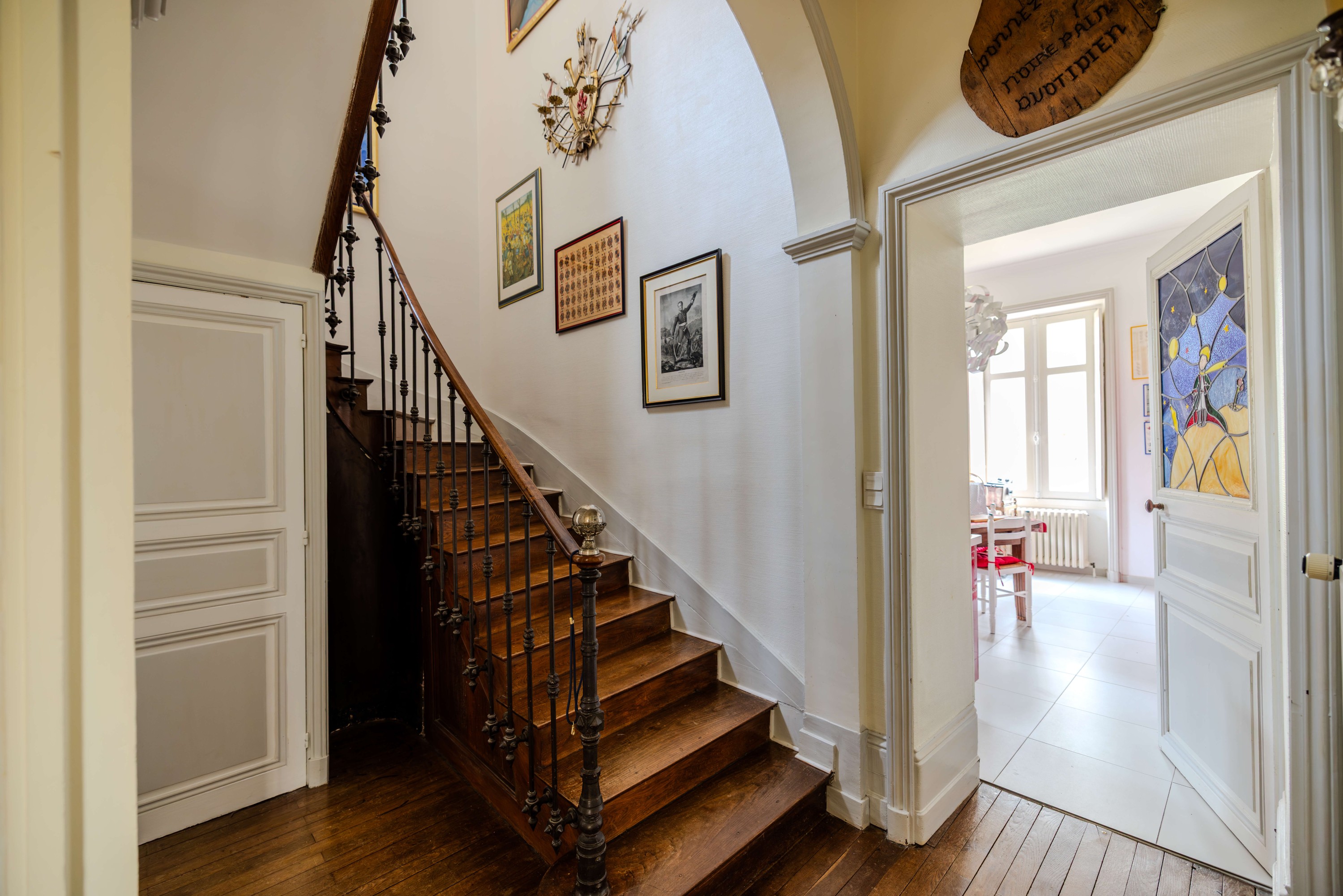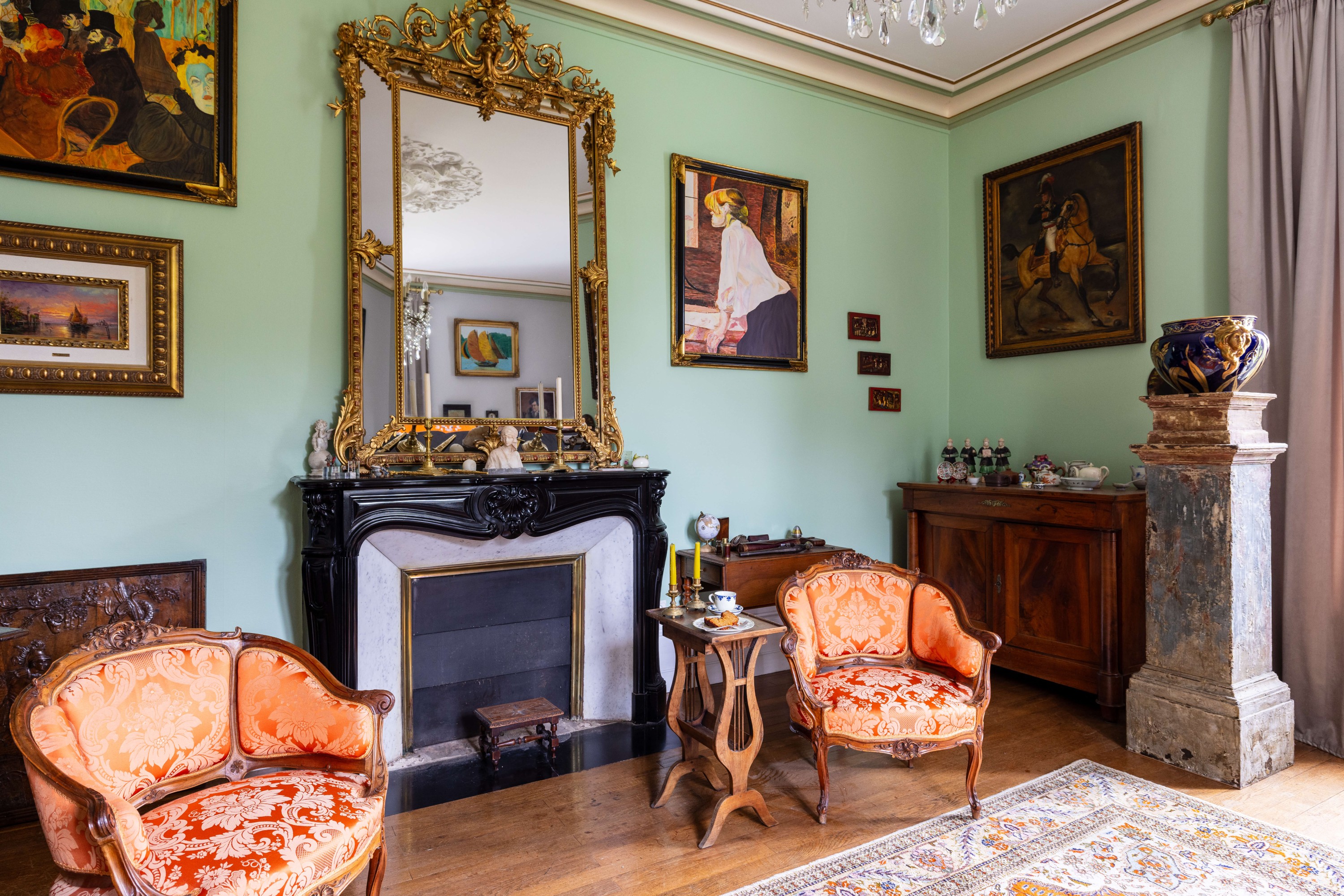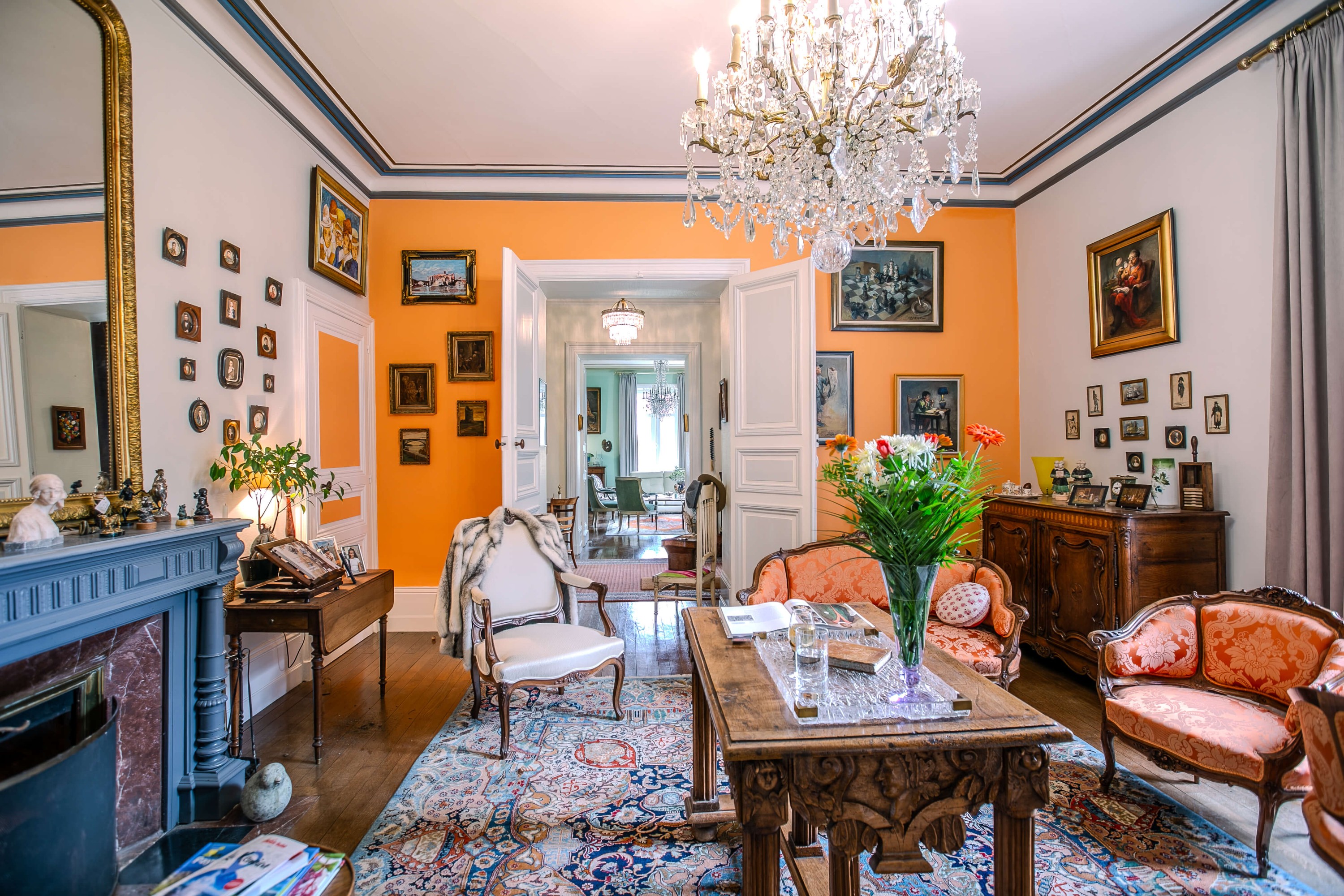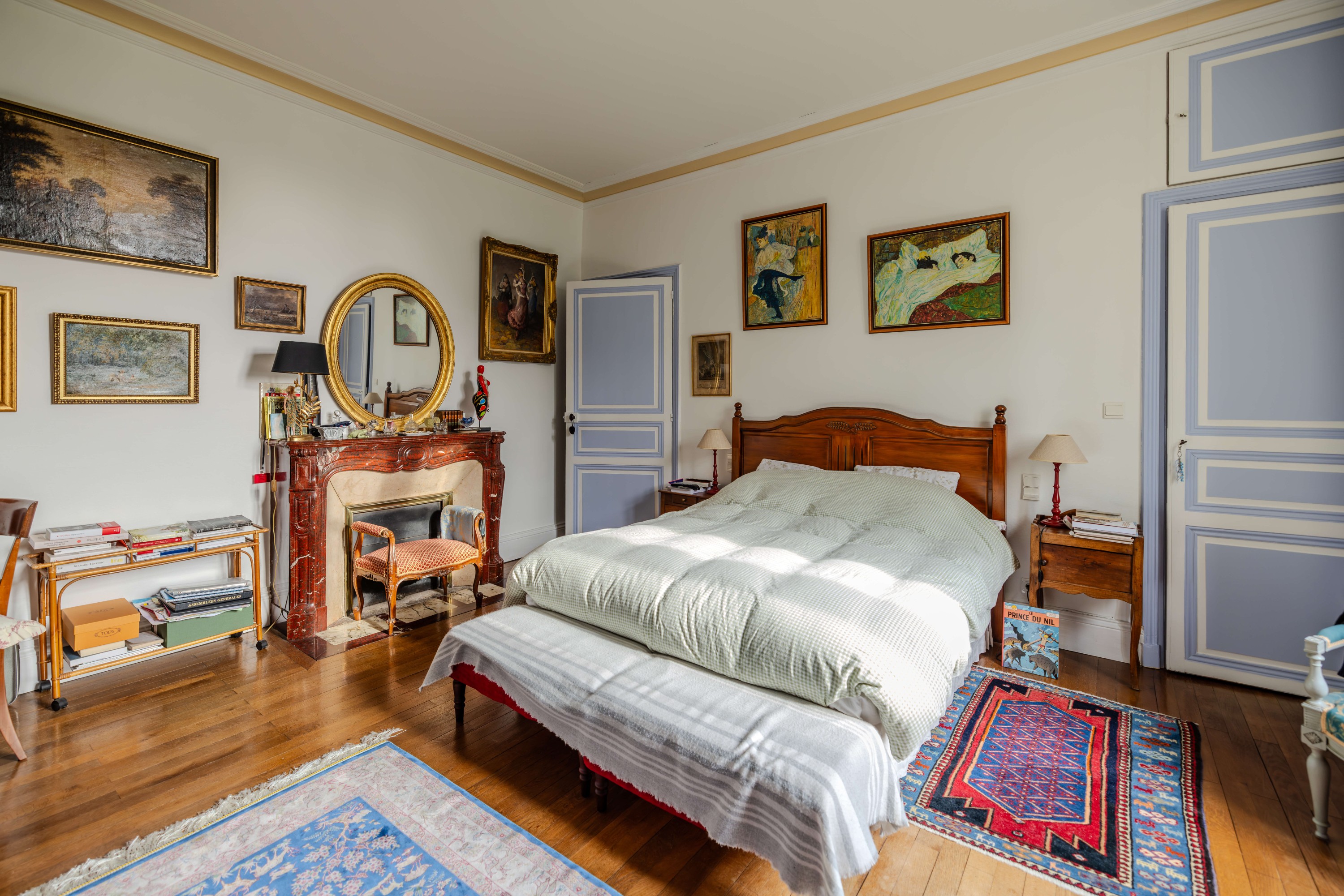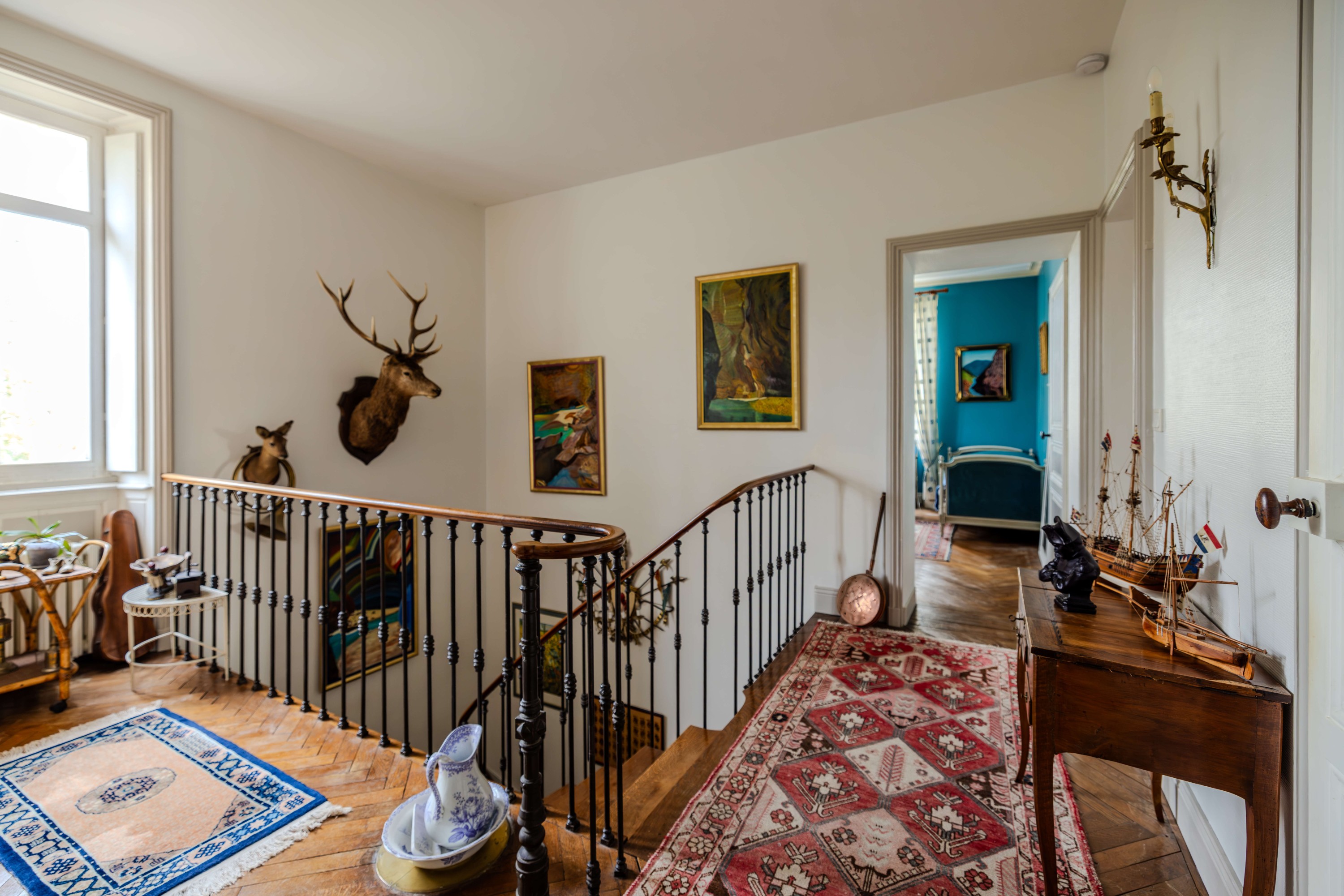À l’intérieur, l’élégance se poursuit avec des parquets en chêne et peuplier, des cheminées de marbre, des cimaises en boiserie, des portes à panneaux et des corniches finement sculptées.
