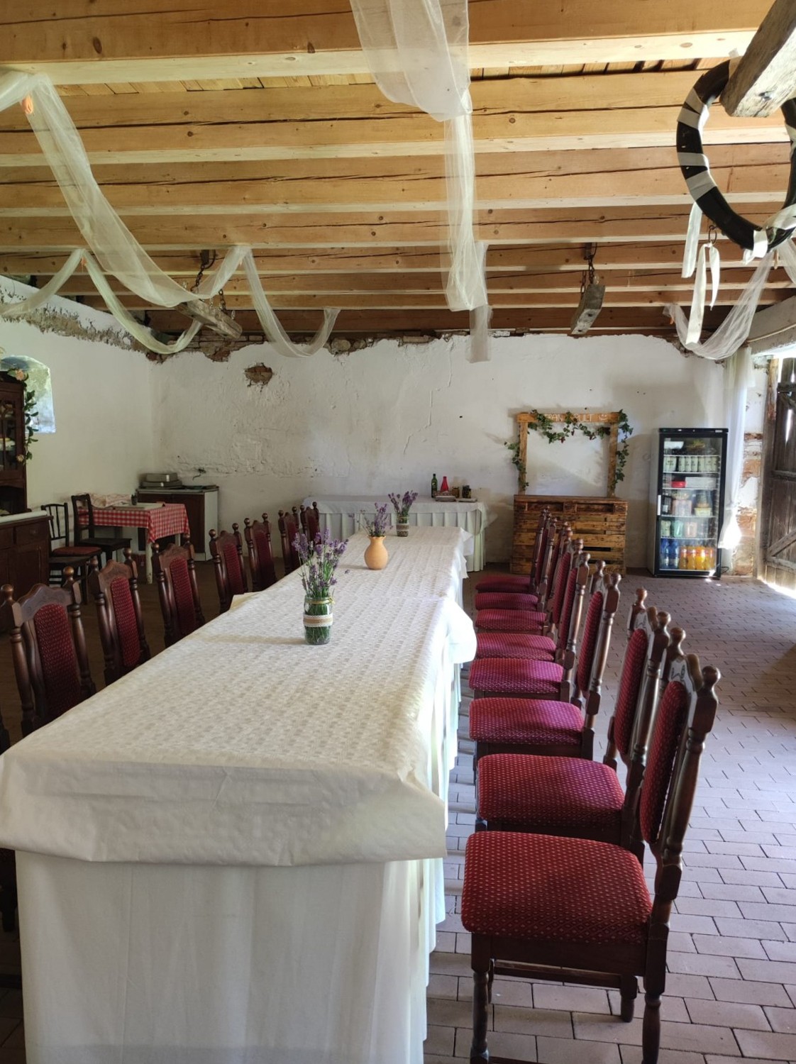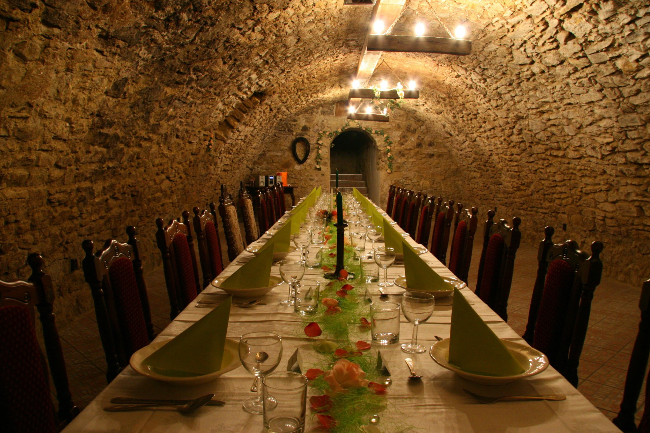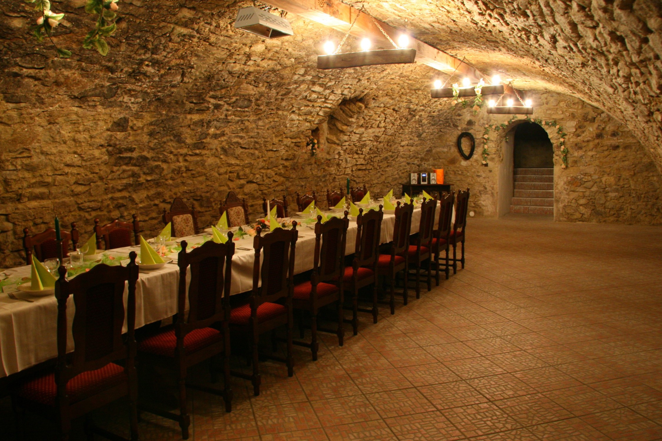 Une cave traditionnelle à voûte en berceau s’étend sur toute la longueur du bâtiment principal.