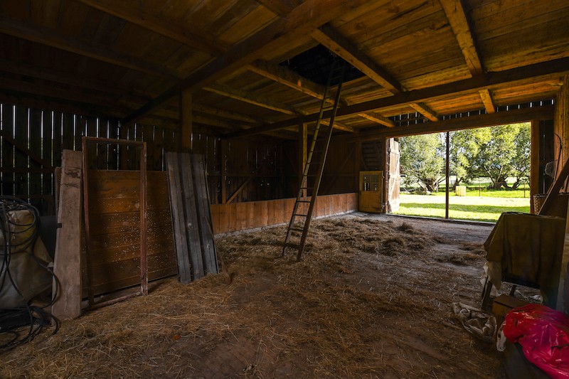 Le bâtiment du moulin combine habitation, moulin et scierie sur trois niveaux. La maison du cocher, construite en 1900 et rénovée en 1988, offre un espace supplémentaire. La vaste cour avec grange et jardin permet divers usages et offre la possibilité de créer une parcelle constructible.
