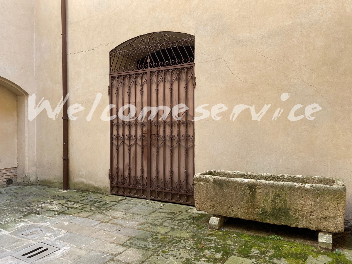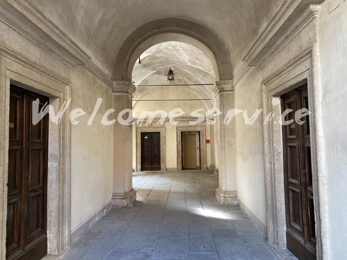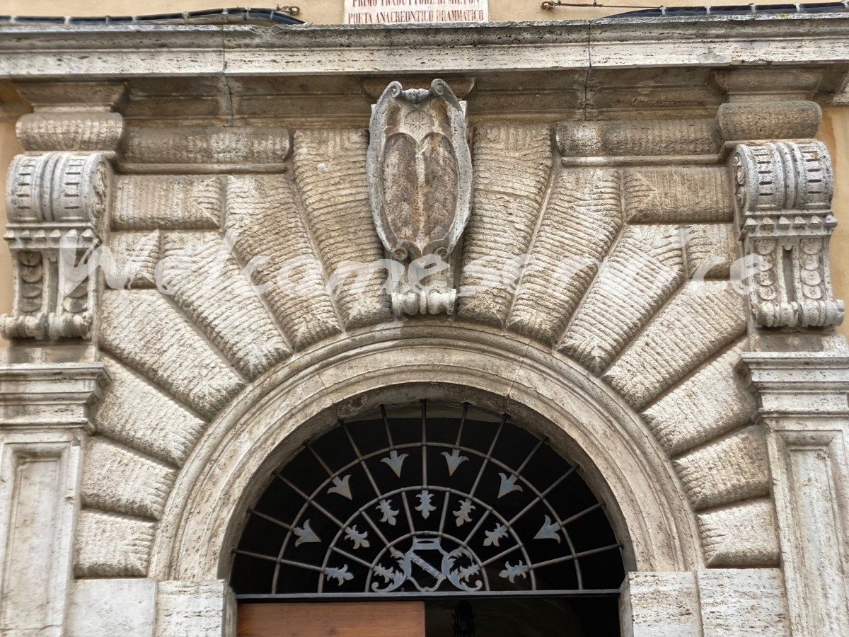 L'unité à vendre est située dans un impressionnant palais urbain (Palazzo), construit par une famille riche et puissante au début du 16ème siècle. Il a été conçu par Antonio da Sangallo le Jeune et était la résidence privée de trois évêques ainsi que du célèbre musicien Paolo Rolli. Le Palazzo a une forme en U et se distingue par une façade alternant entre plaques de travertin et crépi. Un portail majestueux, orné d'un blason, peut-être celui d'Ippolito Scalza, donne accès à la magnifique cour à arcades. De là, un imposant escalier en travertin mène au dernier étage en traversant la belle loggia du premier étage. Le bâtiment n'est pas un immeuble résidentiel ordinaire et est soumis à la surveillance de l'autorité de protection des monuments historiques.
