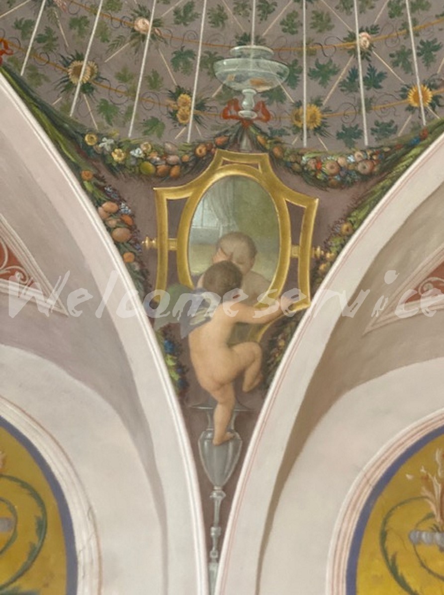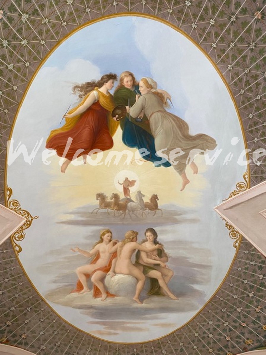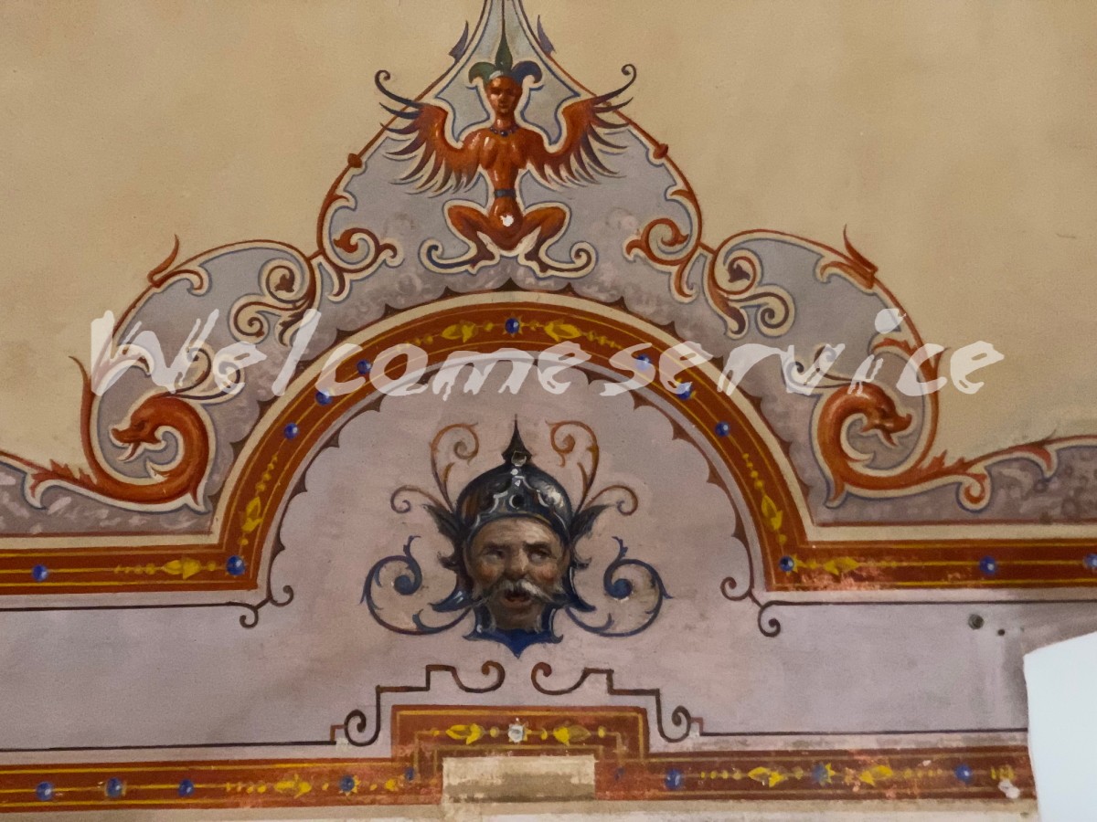 L'appartement/bureau de 300 m² comprend des pièces joliment décorées, dont deux impressionnantes salles avec des fenêtres en arc orientées vers l'ouest, avec des murs et des plafonds ornés de fresques. Deux de ces pièces sont actuellement séparées du reste de l'appartement par un accès distinct ; l'une de ces pièces est très spacieuse et dispose d'une grande cheminée. Cependant, ces deux pièces peuvent facilement être réunies en ouvrant deux portes existantes. Une pièce a une porte-fenêtre qui mène à un espace extérieur privé.