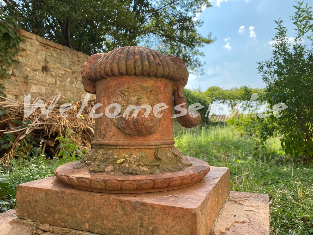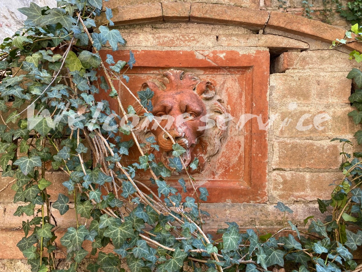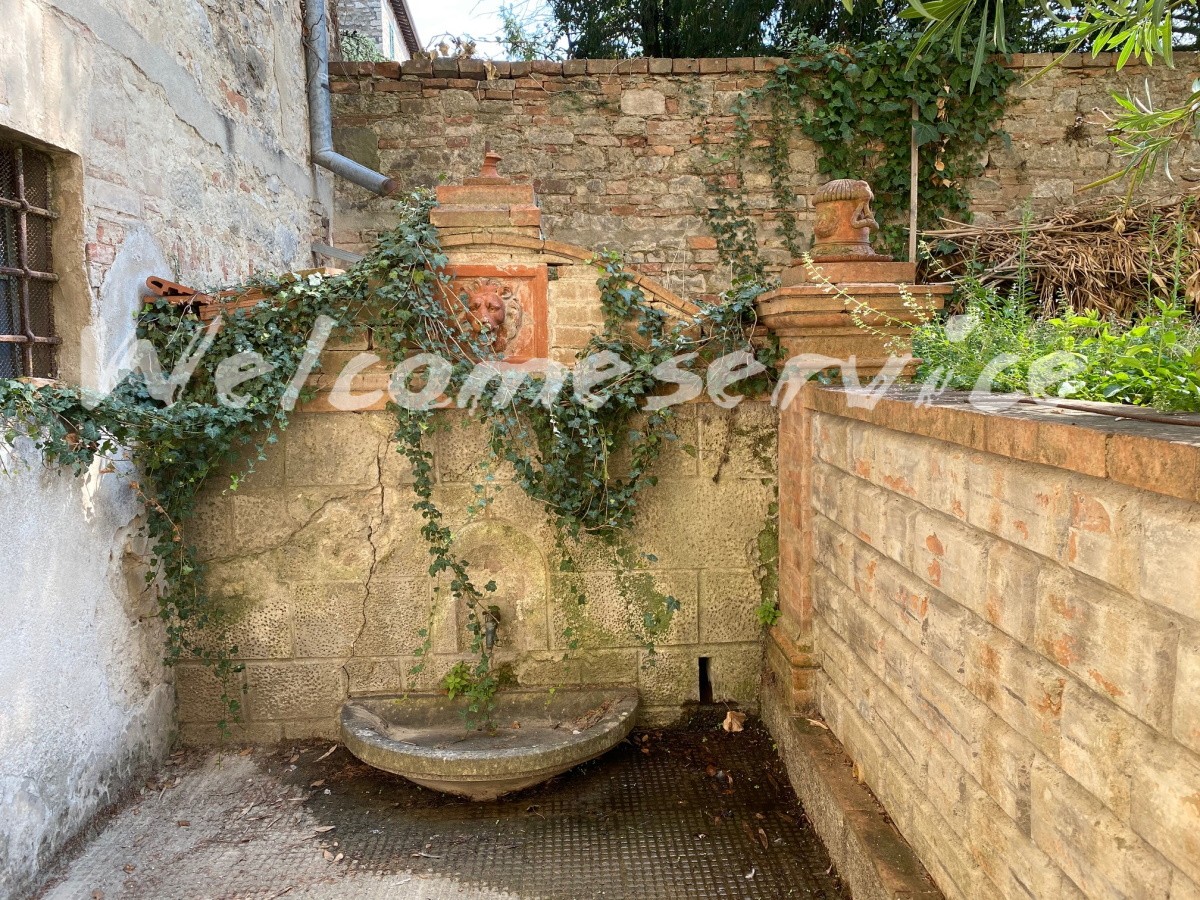 L'espace extérieur privé de 133 m² est principalement constitué d'une zone verte avec une fontaine et un masque de lion en terre cuite. Une partie de cette zone est pavée. Il est accessible depuis le garage ainsi que depuis l'appartement via une porte en verre. Ici, vous pourrez profiter d'une vue panoramique sur les environs de Todi et la vieille ville, dominée par l'église San Fortunato.