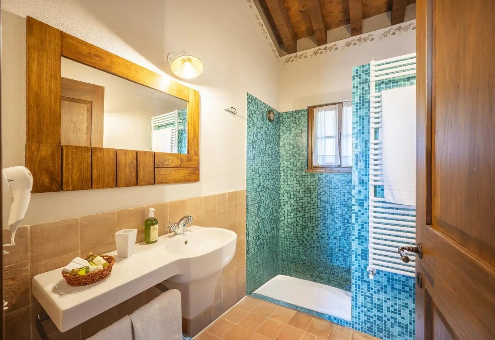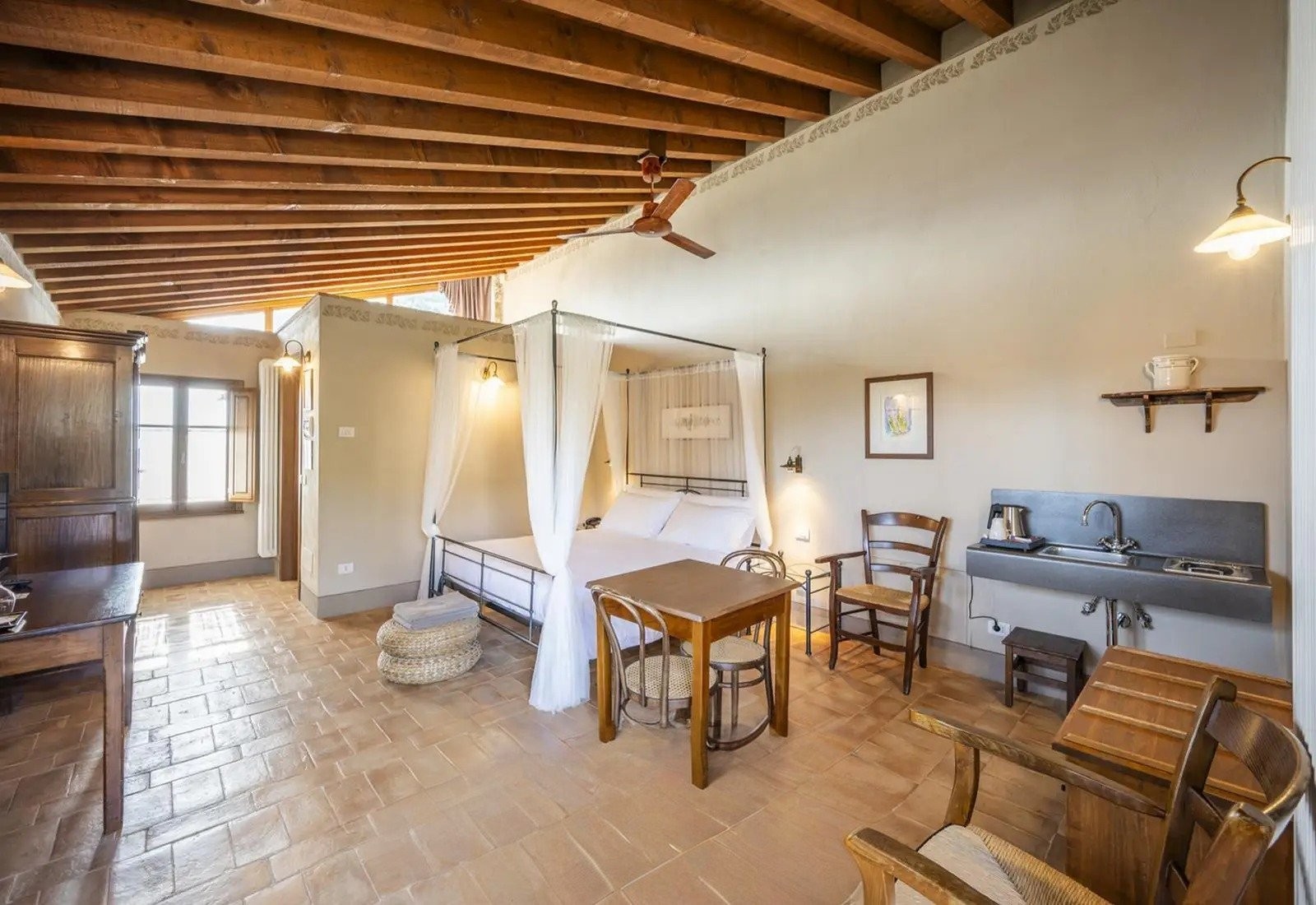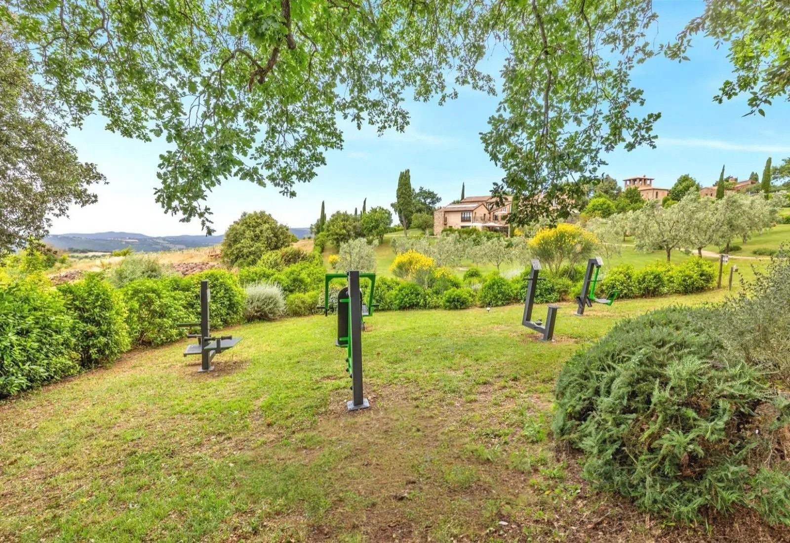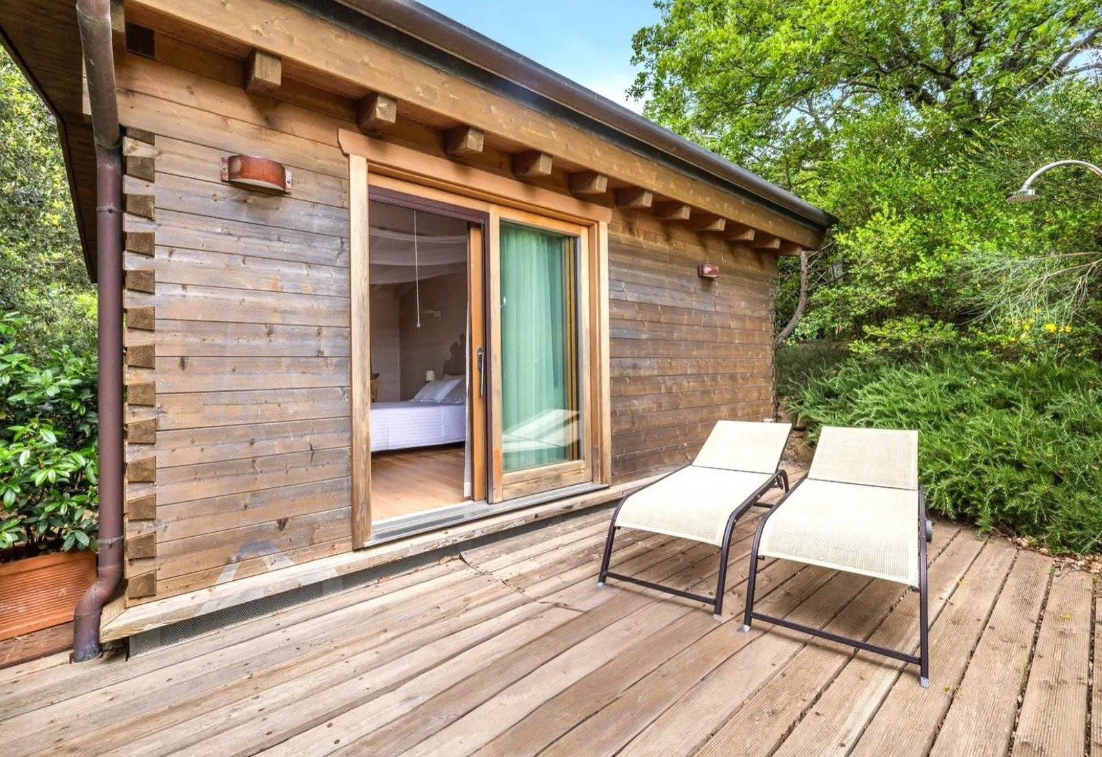 La résidence principale, un ancien corps de ferme du XIXe siècle entièrement rénové, offre de larges perspectives sur la Maremme et peut accueillir les invités ou servir de maison principale. La villa du propriétaire, légèrement à l’écart, offre intimité et vues panoramiques, tandis qu’une cabane en bois nichée dans le bois sert de refuge créatif ou de lieu de méditation.