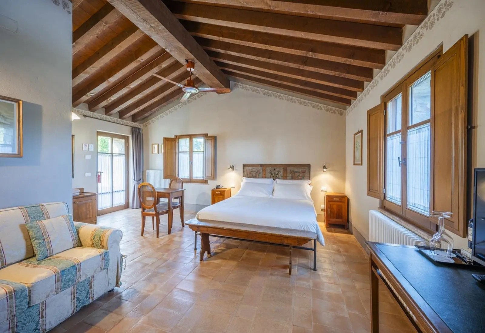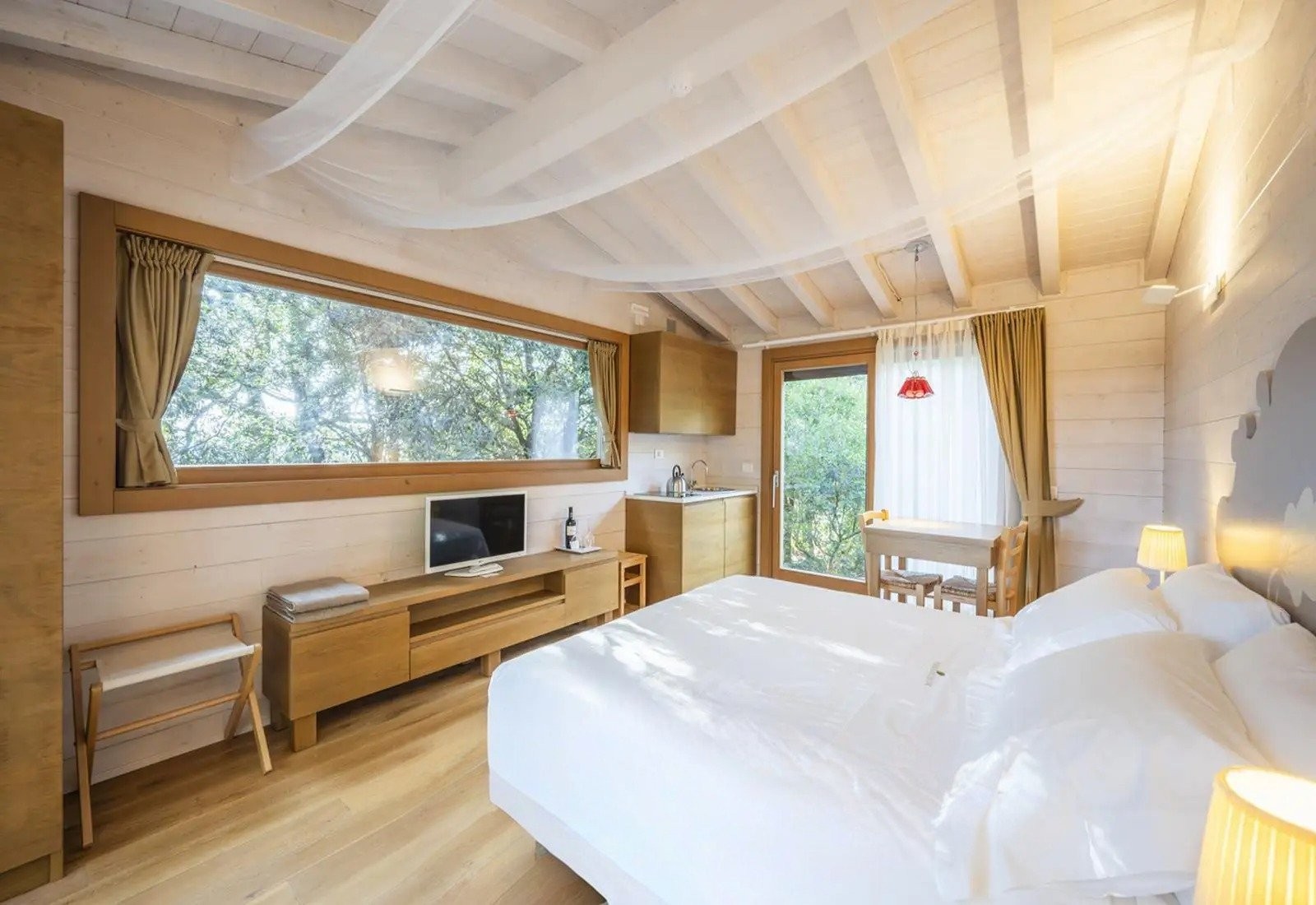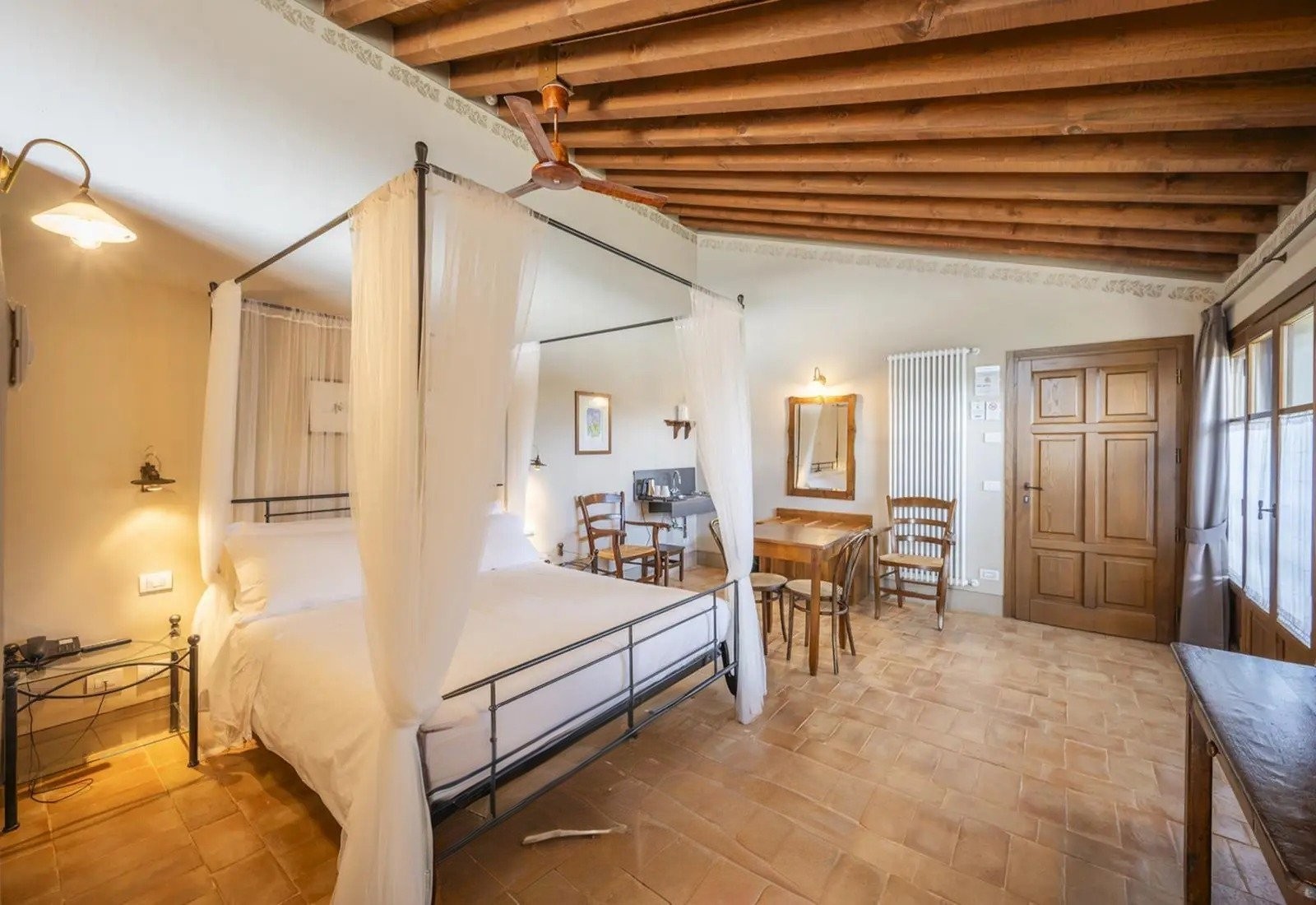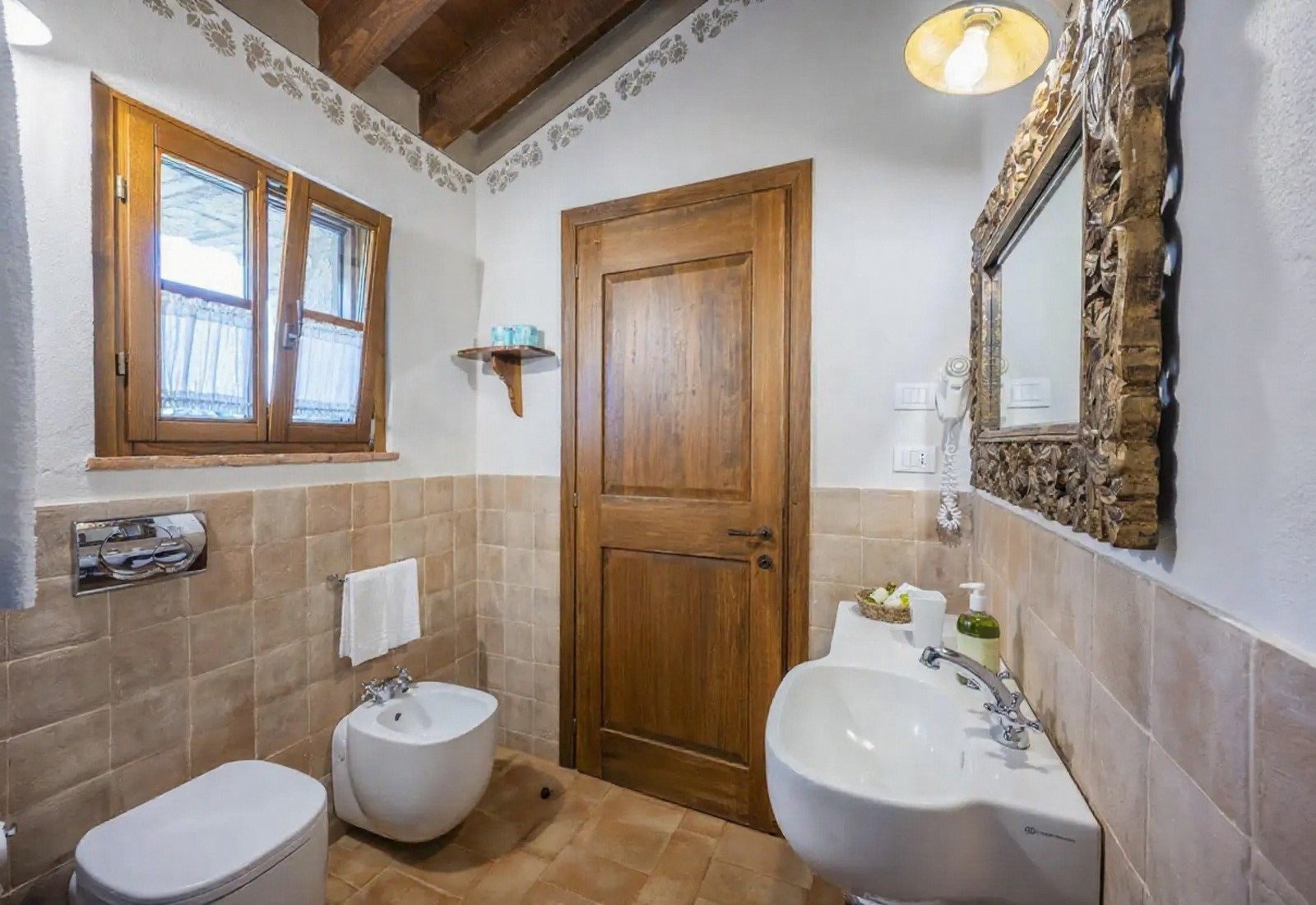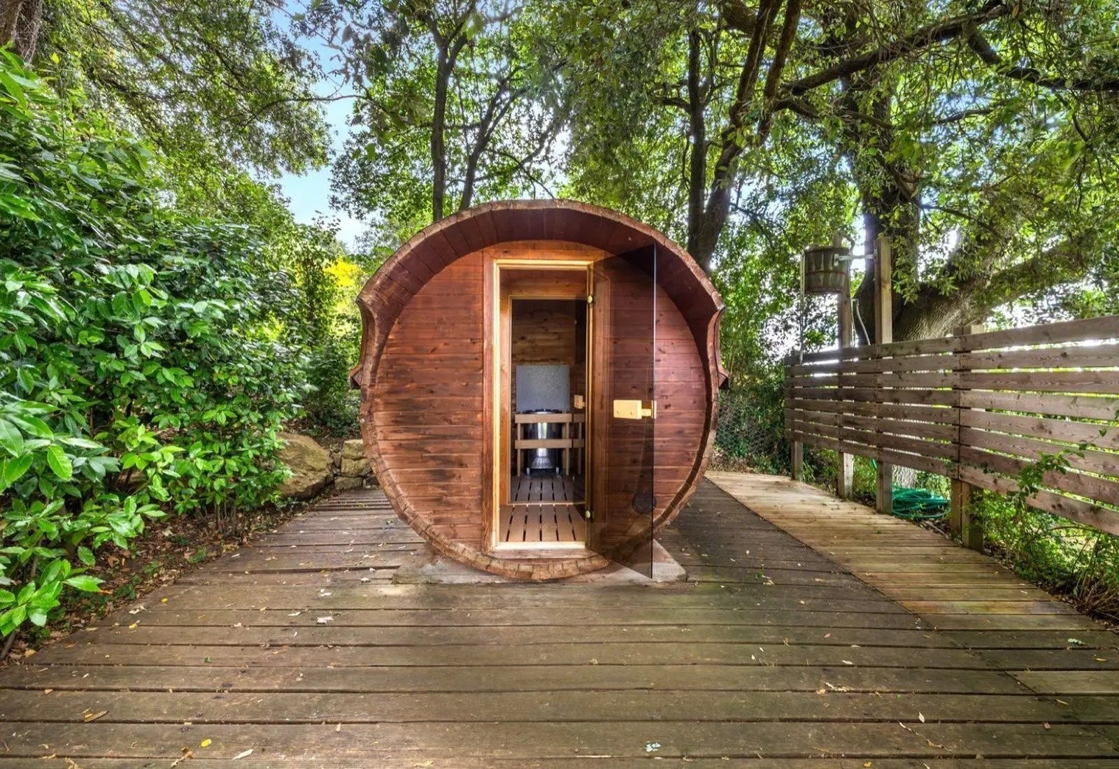 La résidence principale, un ancien corps de ferme du XIXe siècle entièrement rénové, offre de larges perspectives sur la Maremme et peut accueillir les invités ou servir de maison principale. La villa du propriétaire, légèrement à l’écart, offre intimité et vues panoramiques, tandis qu’une cabane en bois nichée dans le bois sert de refuge créatif ou de lieu de méditation.