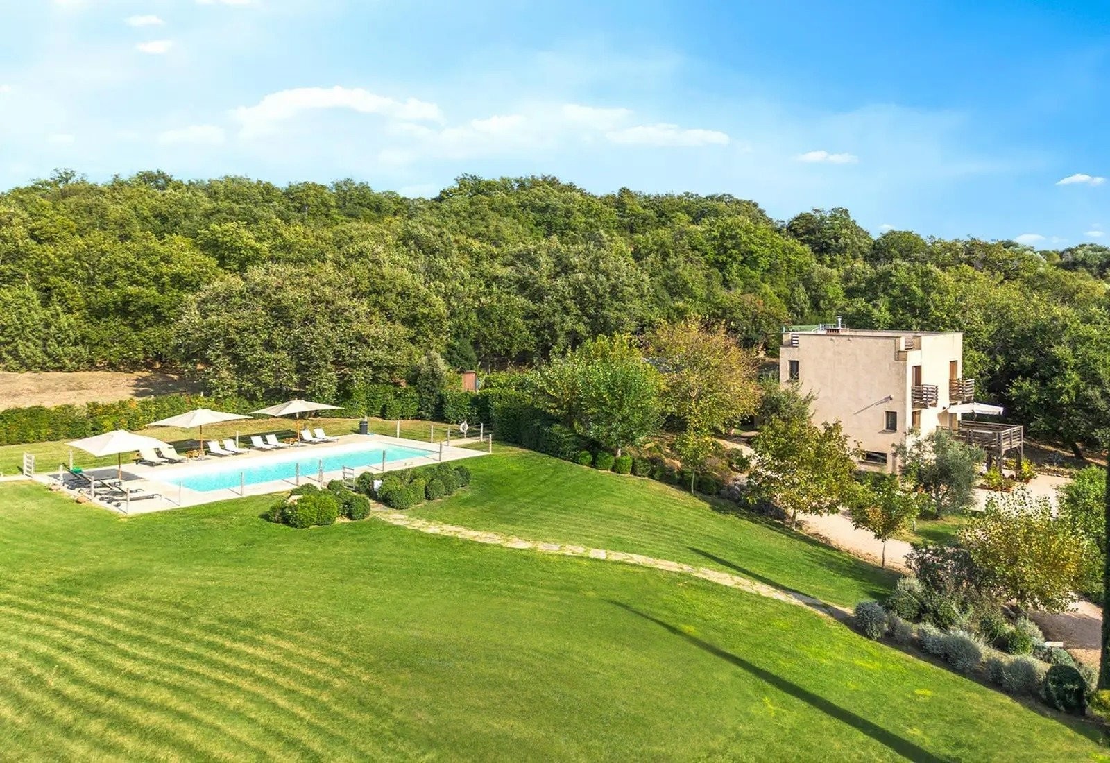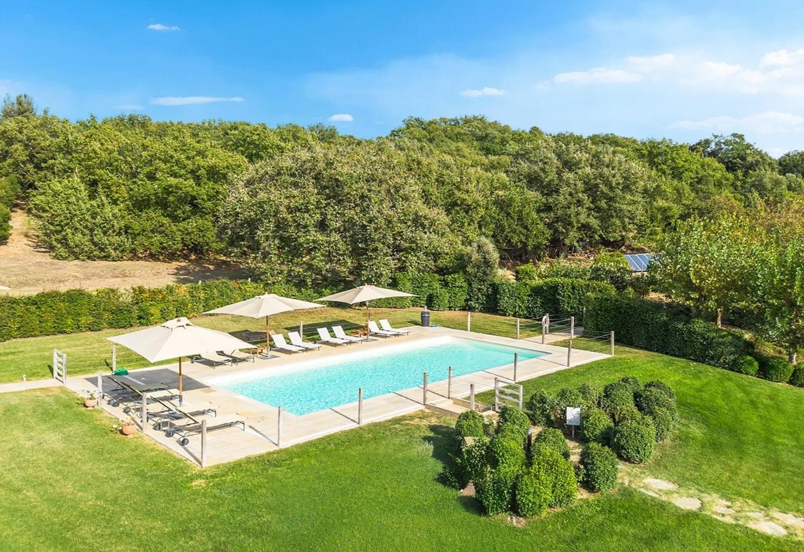 Située dans les collines de la Maremme, entre le Val d'Orcia, classé au patrimoine mondial de l'UNESCO, et le Mont Amiata, la Villa Cerimano rassemble trois résidences indépendantes sur 1,5 hectare de jardins, bois et espaces de bien-être, conçues selon les principes de l’architecture durable.