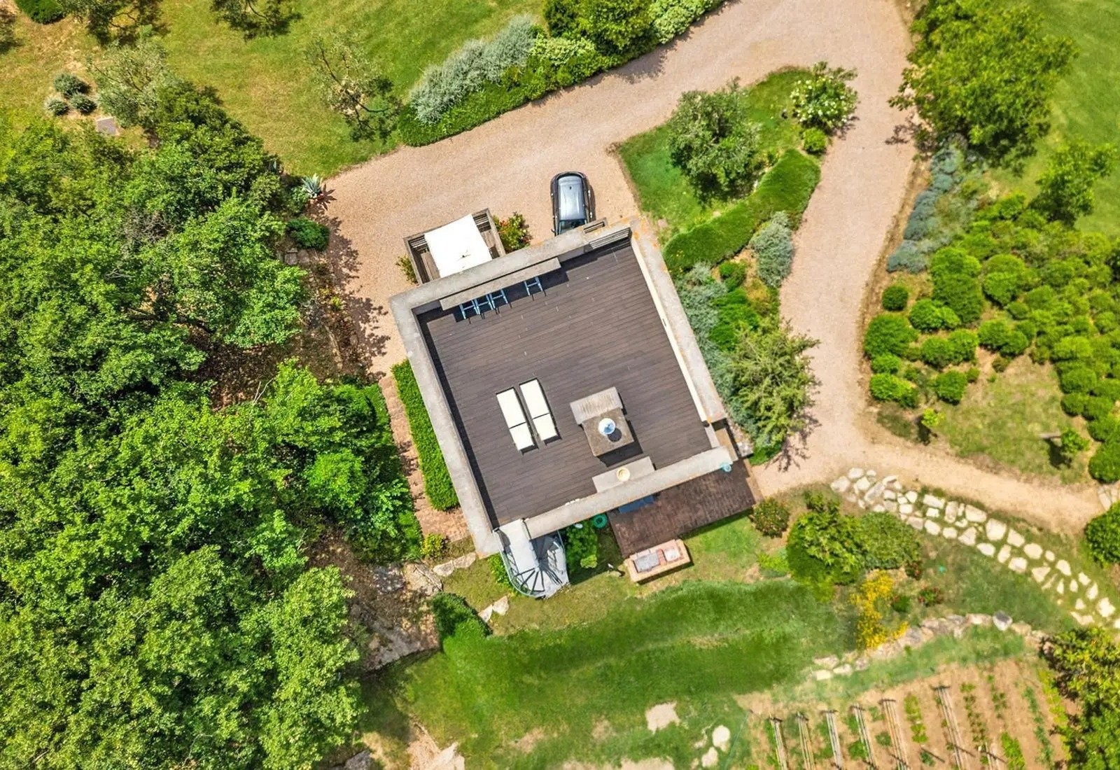 La propriété suit des principes de construction bio : matériaux locaux, plâtre à la chaux et bois massif assurent un confort naturel. Les installations techniques comprennent le solaire thermique pour l’eau chaude, le photovoltaïque pour l’électricité, l’irrigation automatique et une surveillance vidéo complète.
