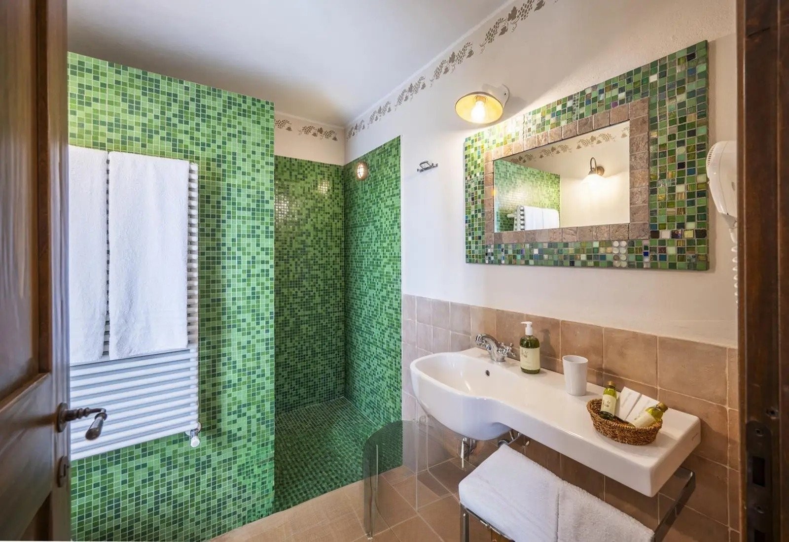 L’architecte Edoardo Milesi, reconnu pour ses interventions au Castello di Colle Massari et au Castello di Vicarello, a su associer matériaux traditionnels toscans – pierre, bois, terre cuite artisanale – à des solutions modernes : énergie solaire, photovoltaïque et irrigation automatique via trois puits. Le domaine s’intègre harmonieusement dans le paysage.