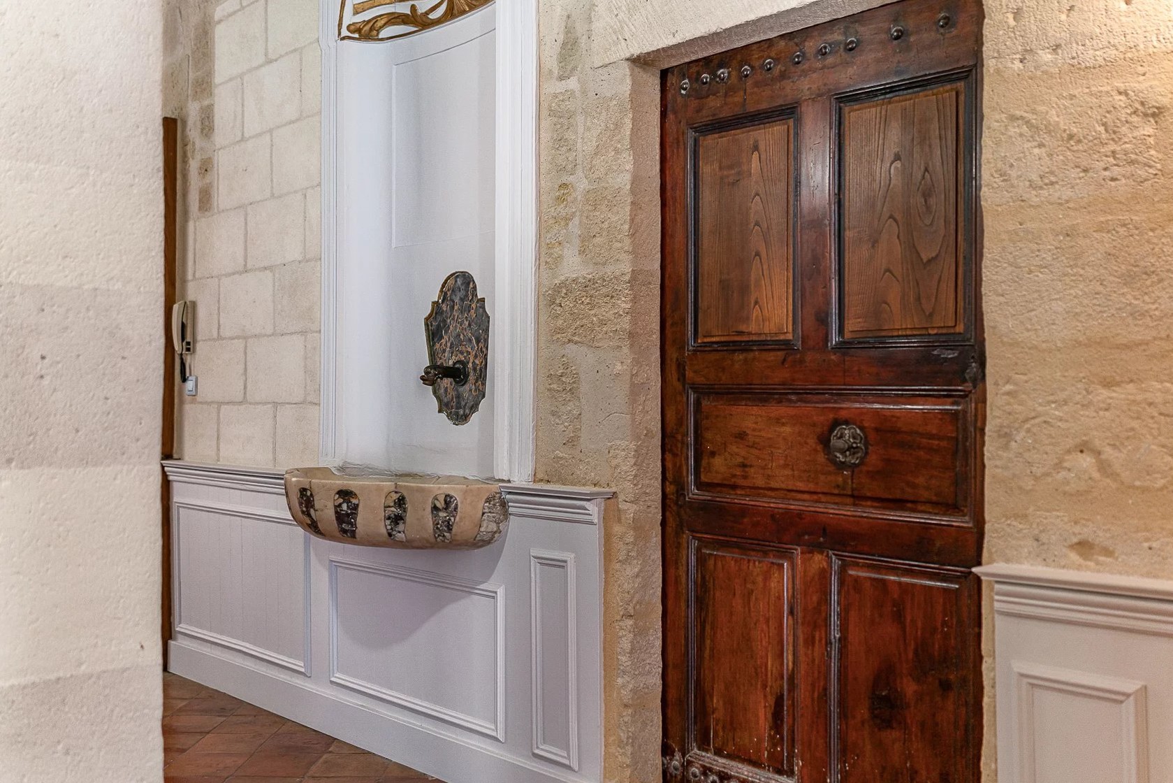 Les parties communes témoignent du caractère du lieu : pierre apparente, voûtes, boiseries anciennes, trumeaux, hauteur sous plafond de plus de cinq mètres.
