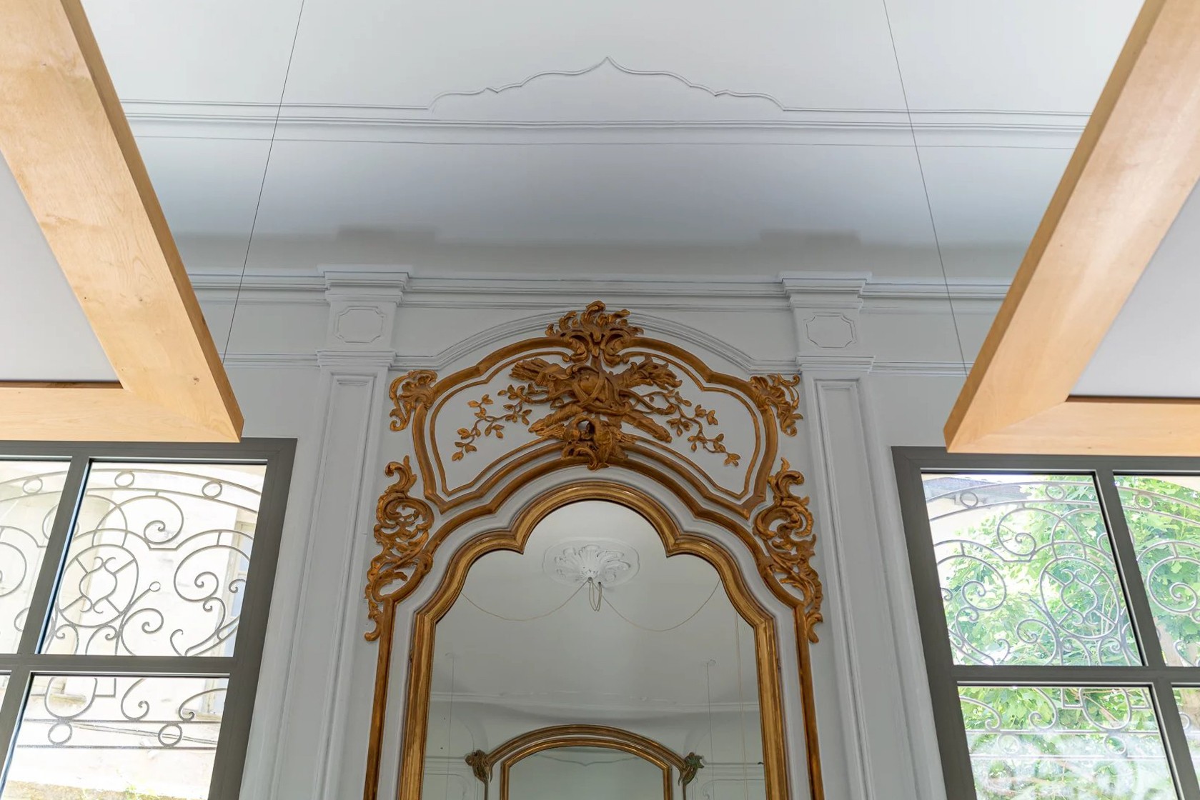 Grand escalier Cheminée Plafonds hauts Décoration en stuc Plafonds voûtés
