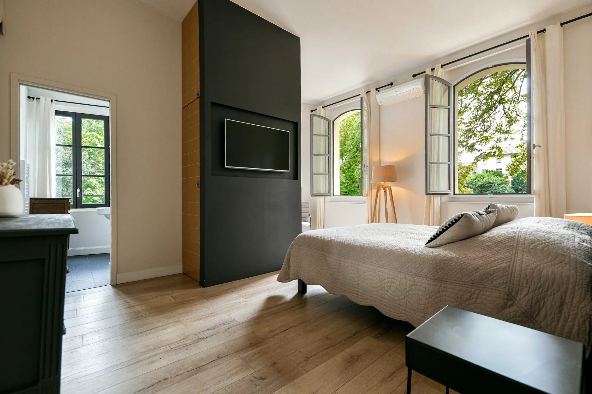 À l’extérieur, le jardin est un véritable écrin de verdure avec terrasse ombragée sous un magnifique marronnier et bassin. La maison est entièrement climatisée, idéale pour une grande famille ou un projet de chambres d’hôtes, offrant flexibilité et potentiel dans un cadre de vie exceptionnel.