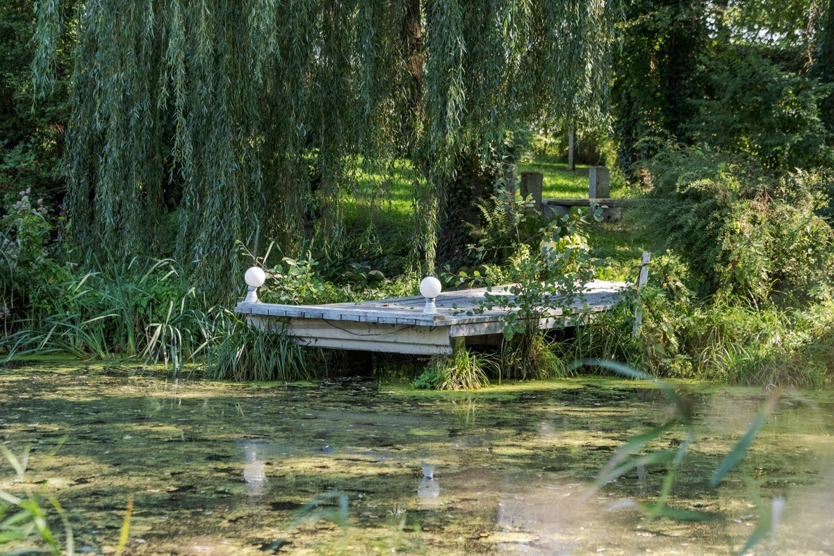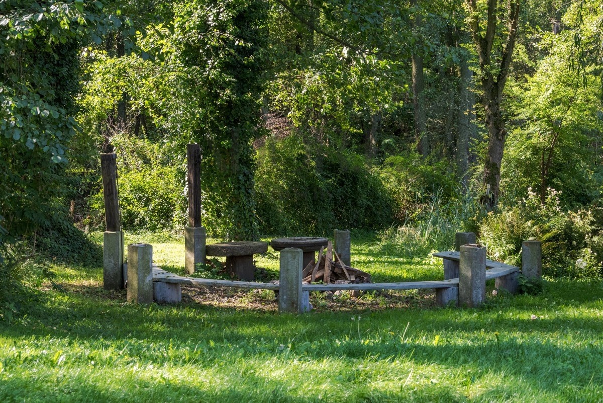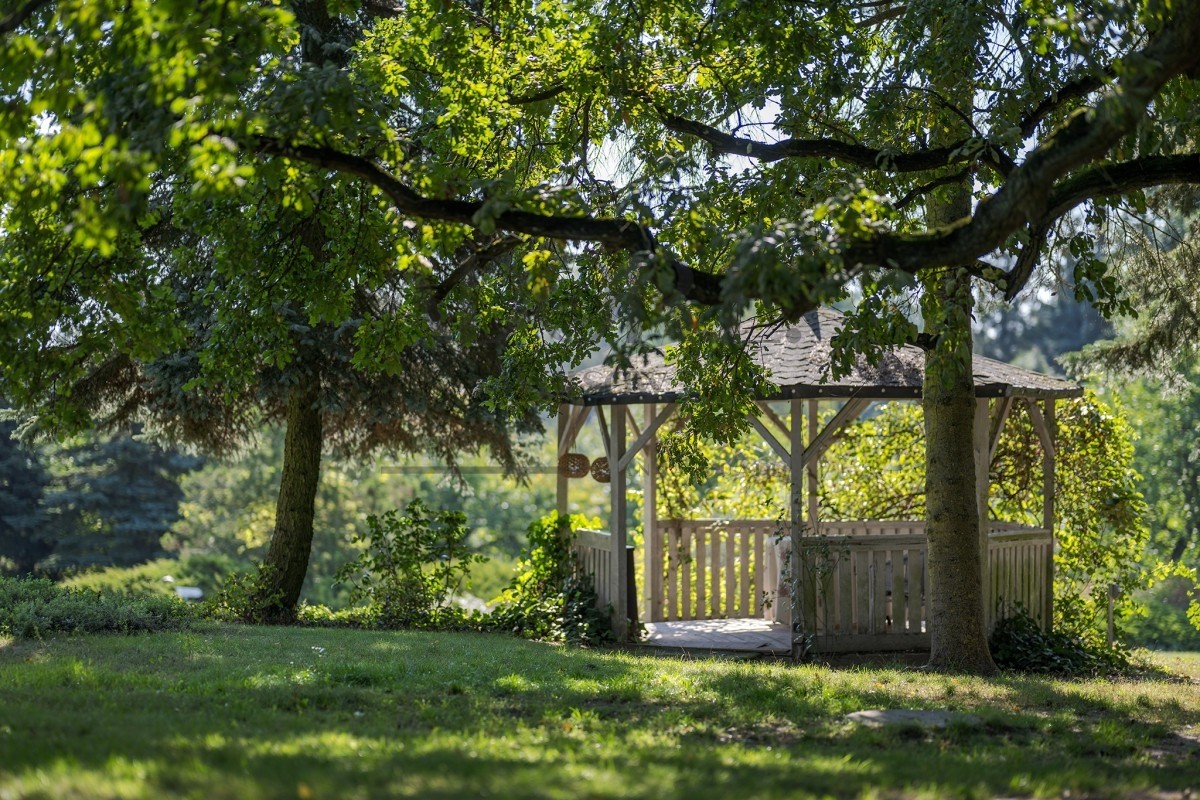 - étang et gazebo barbecue avec foyer, dimensions 15m x 10m