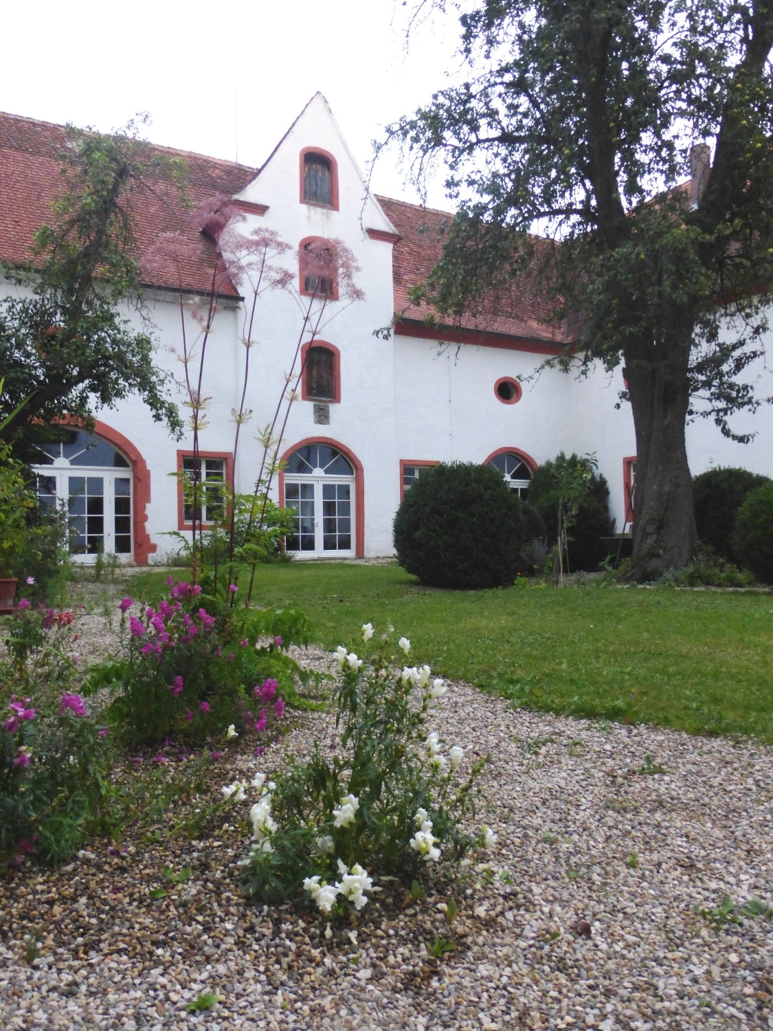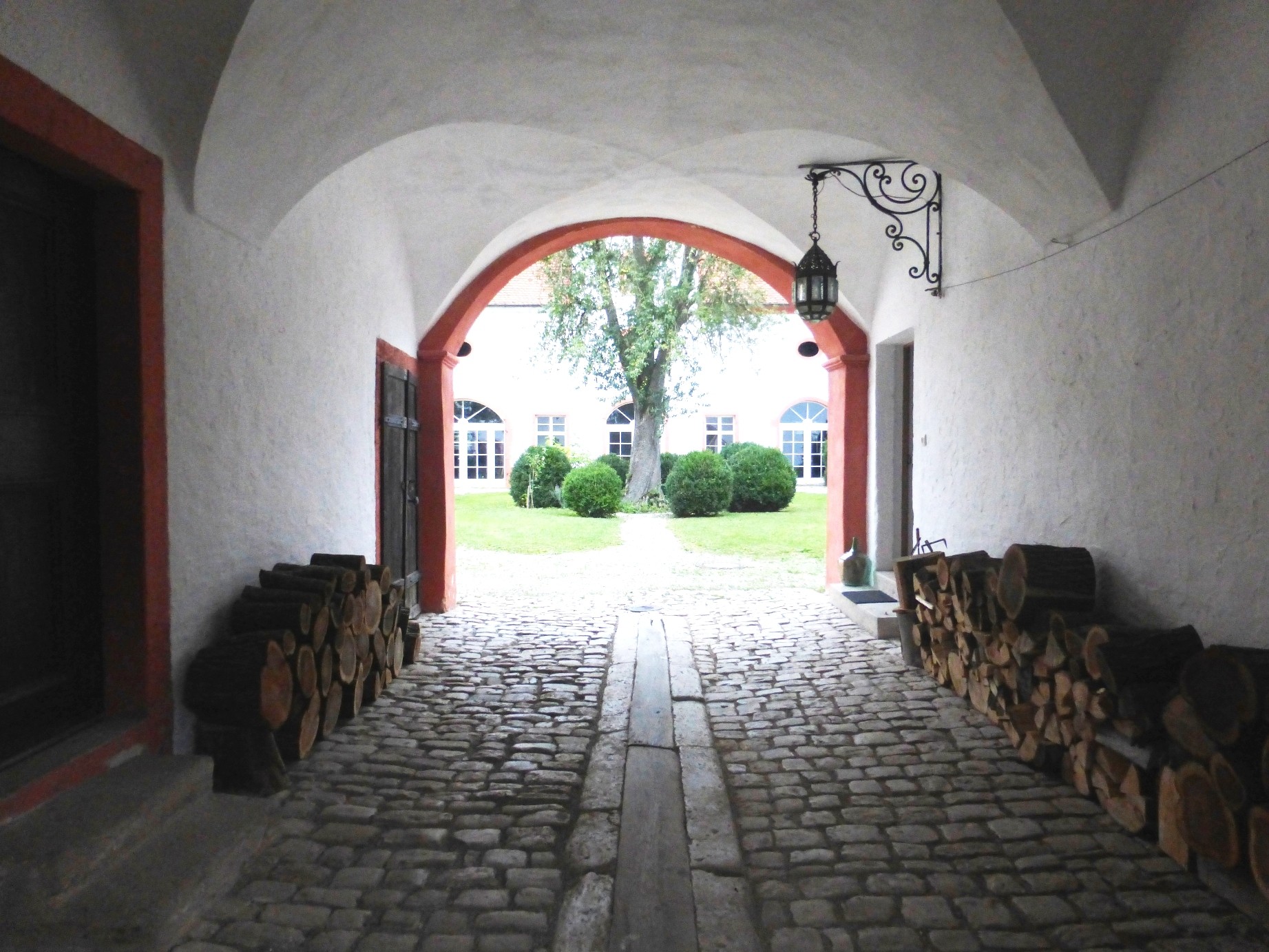 En passant la porte du château, on accède à la magnifique cour intérieure à l'abri des regards. Un grand poirier offre de l'ombre les jours ensoleillés dans une intimité absolue.