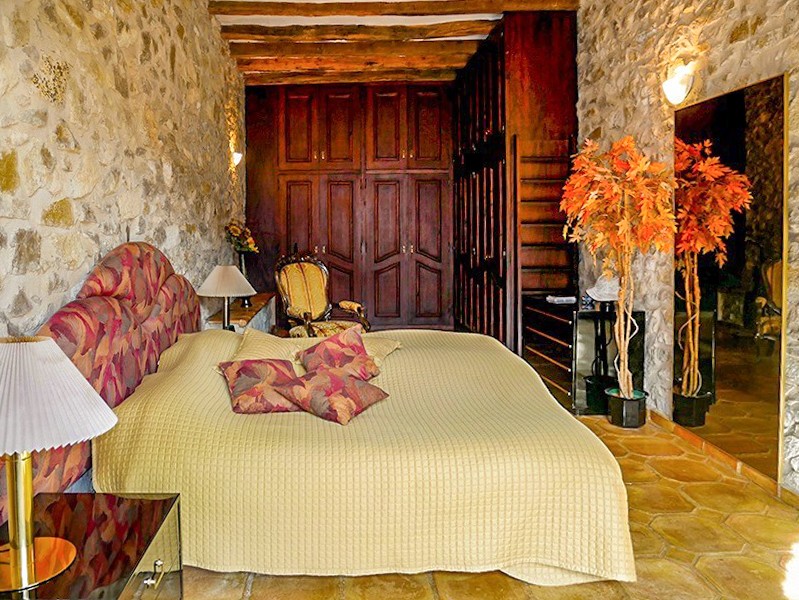 Le bâtiment comprend 16 pièces, dont 5 chambres et 3 salles de bains, une cuisine moderne ainsi qu’un salon avec cheminée ouverte.