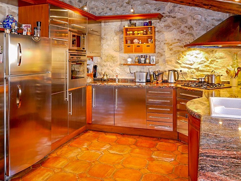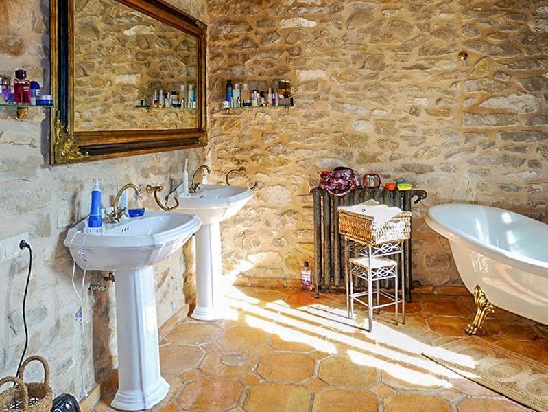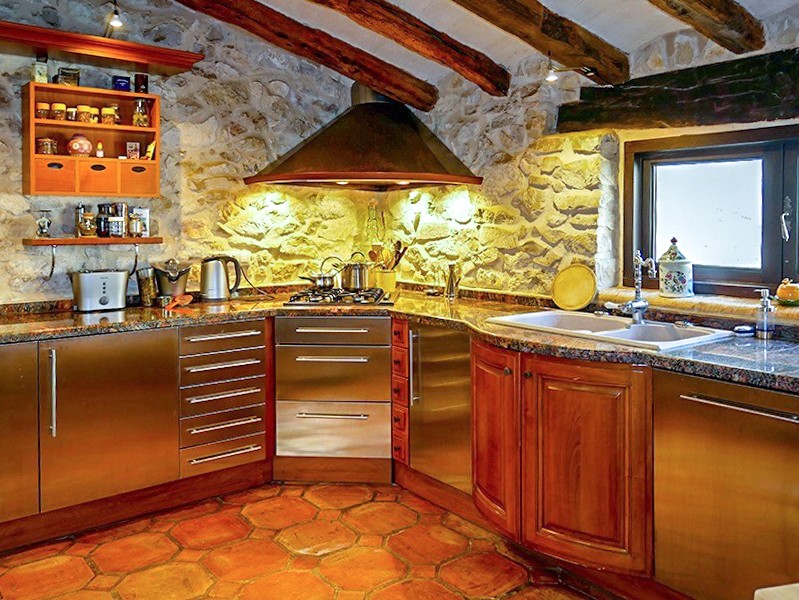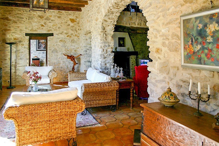 Les travaux ont inclus la restauration des poutres en chêne d’origine, des sols artisanaux et des portes en bois anciennes. Le chauffage central est assuré par Roca. Les murs en pierre naturelle, les hauts plafonds et les espaces de vie ouverts caractérisent l’intérieur.