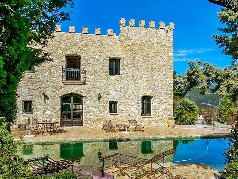 Le domaine s’étend sur 40 hectares et comprend un court de tennis, une cuisine extérieure et une cave à vin. Une utilisation commerciale – par exemple comme lieu de réception – n’a pas encore été autorisée ; les démarches administratives nécessaires relèvent de la responsabilité de l’acheteur.