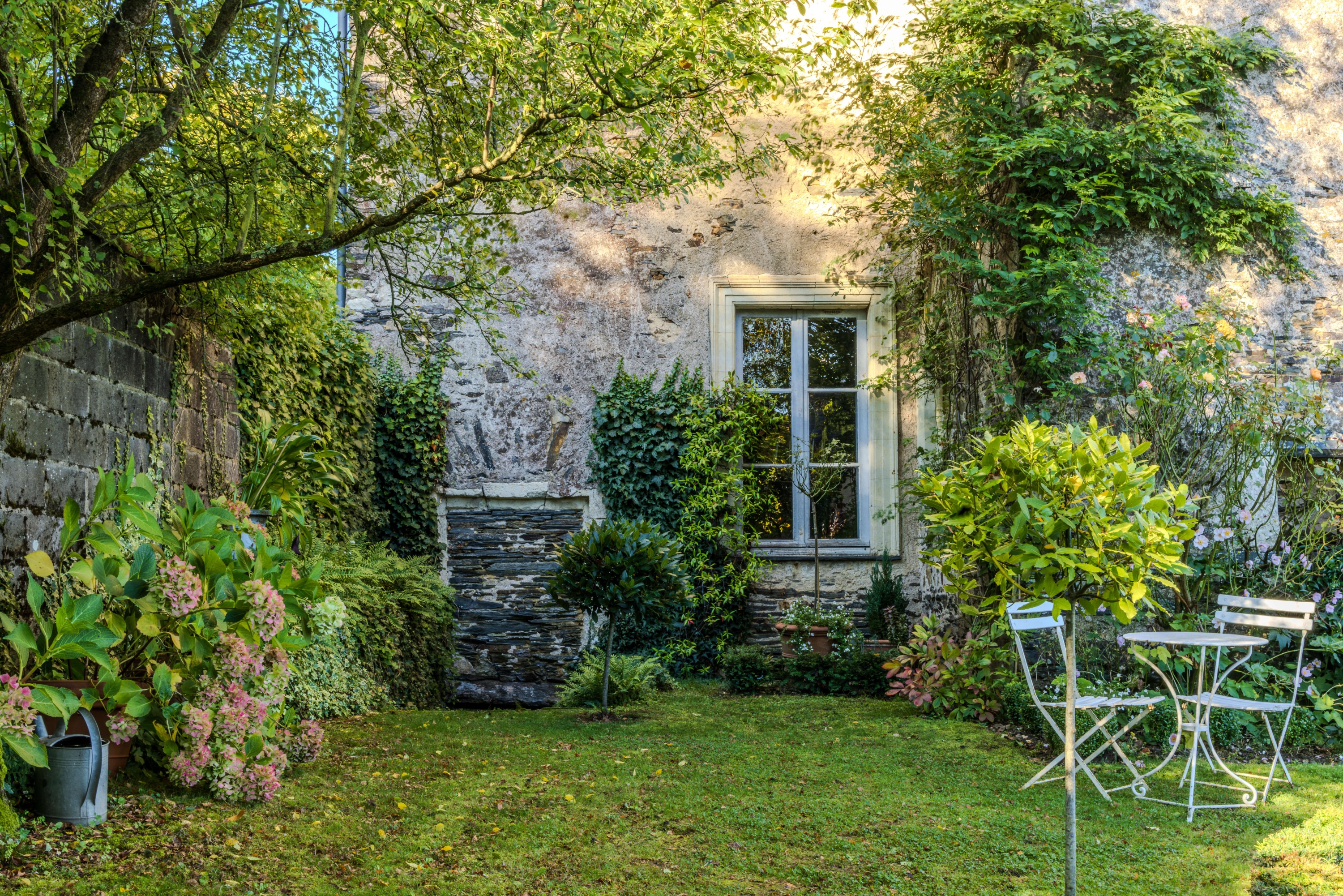 Un deuxième jardin, délimité au Nord par un mur en pierres sèches percé d’un haha, ouvre le jardin sur le paysage. Planté de jeunes arbres, ce jardin forme un espace intermédiaire entre le jardin ordonnancé et une prairie en contrebas.