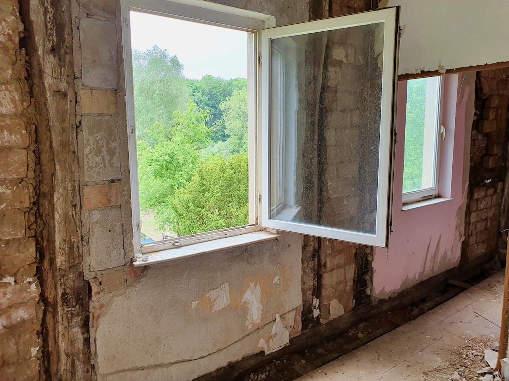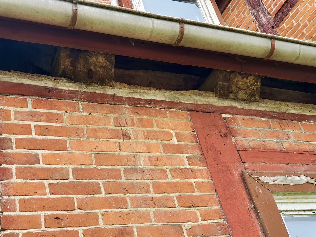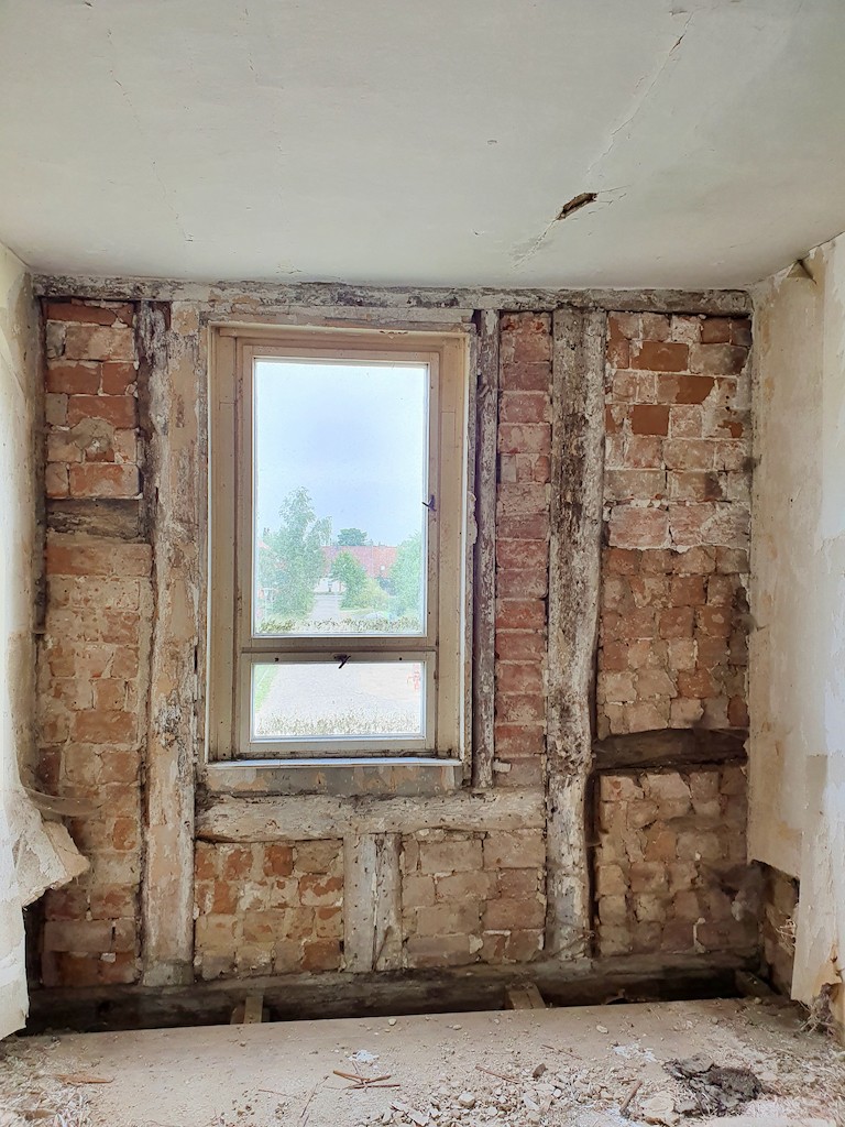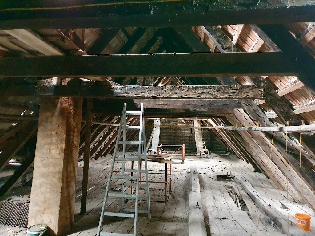 Malgré les diverses modifications et la mauvaise utilisation de l'époque après 1945, certains éléments de l'époque de la construction, comme les portes et les escaliers, ont été conservés à l'intérieur. La longue vacance et le manque d'entretien ont entraîné des dommages considérables aux poutres de la maison. Les propriétaires actuels ont donc fait établir un registre des bois endommagés, selon lequel les bois peuvent être remplacés.