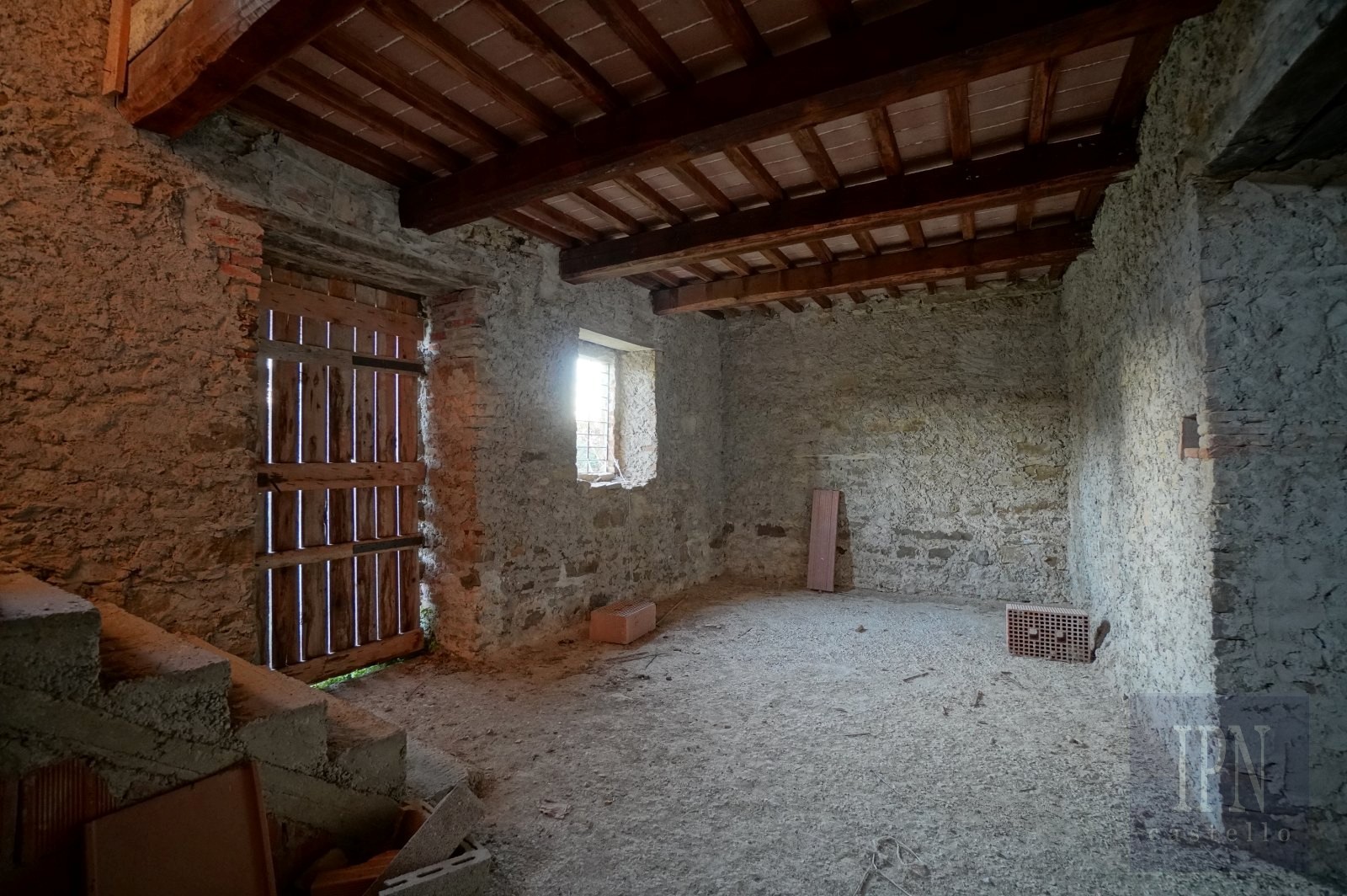 L'edificio principale viene venduto in condizioni di finitura da costruttore, consentendo al futuro proprietario di completare gli interni secondo il proprio gusto personale e le proprie preferenze di design. Dal punto di vista architettonico, la casa colonica conserva l'autentico carattere umbro.