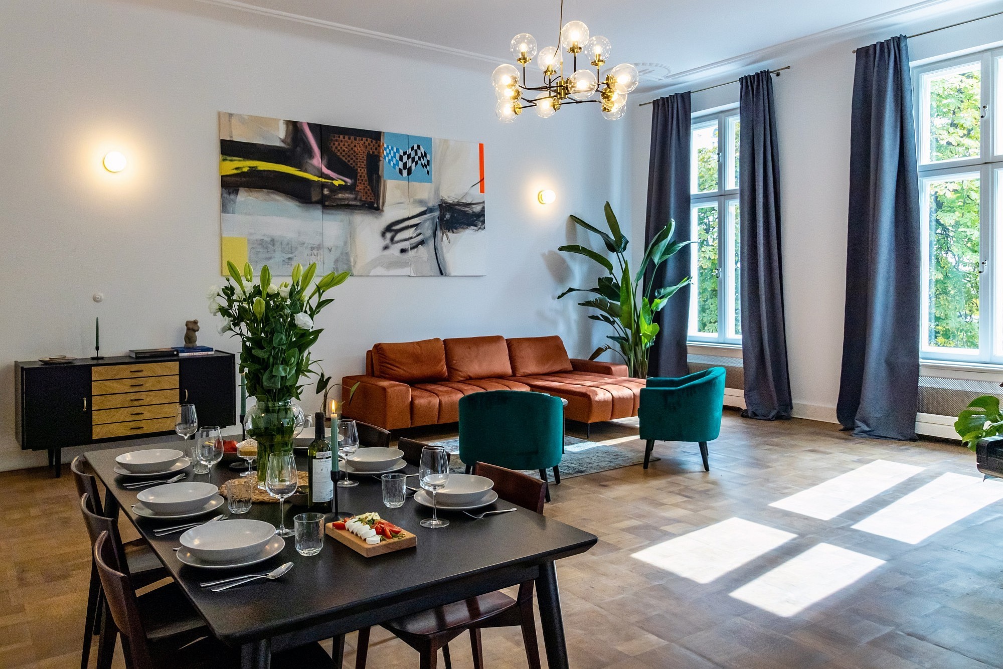 Byggnaden, från slutet av 1800-talet, ligger på kort gångavstånd från Hala Koszyki, ett av Warszawas främsta gastronomiska och kulturella centrum. Lägenheten ligger i en historisk byggnad (Kamienica) och förenar Belle Époque-charm med moderna tekniska installationer och högkvalitativa ytskikt.